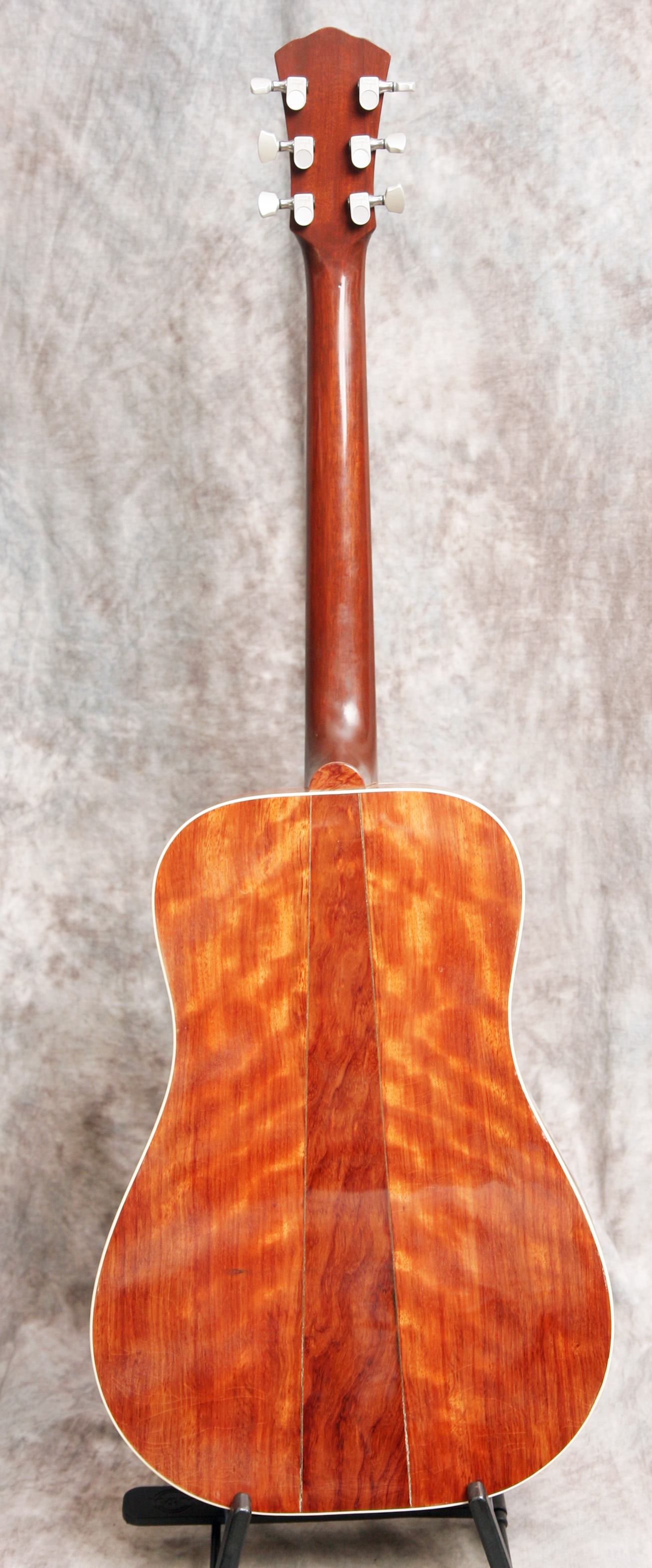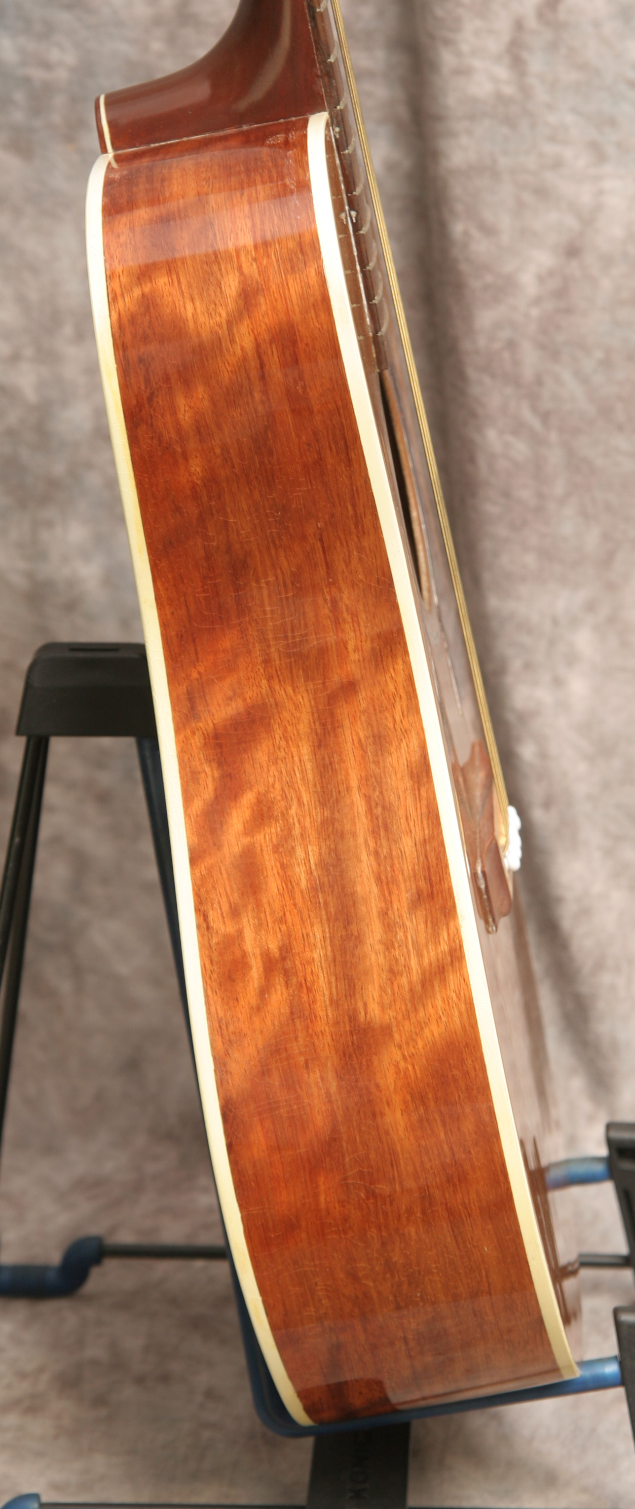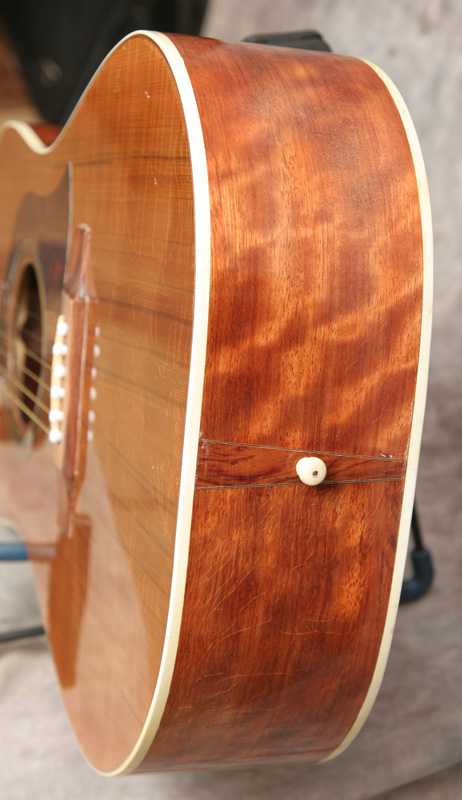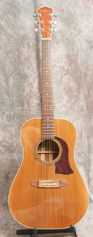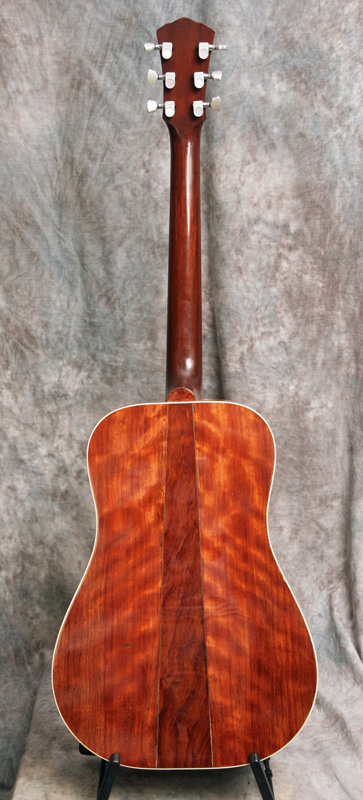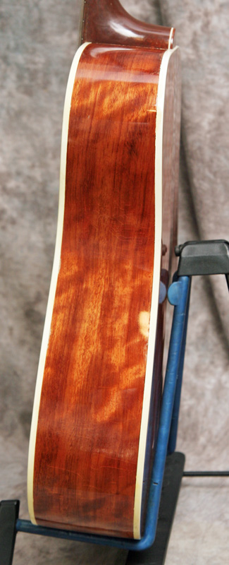 (Serial No. 0018018) Excellent condition. Built in Texas, this guitar upholds the reputation of the Kansas built guitars. Top wood was reclaimed from the old pecan trees that were harvested from the grounds in front of the State Capitol building in Austin, Texas. It has flamed Santos mahogany sides, and a three piece back of Santos mahogany and black walnut. Nut is 1 11/16 inch. Neck is straight and in set, frets are fine. The action is low and comfortable, with room to lower the saddle if desired. Fretboard and bridge are rosewood. This is an excellent hand built US made bluegrass guitar with lots of volume and tone. Why play the same thing everyone else has?