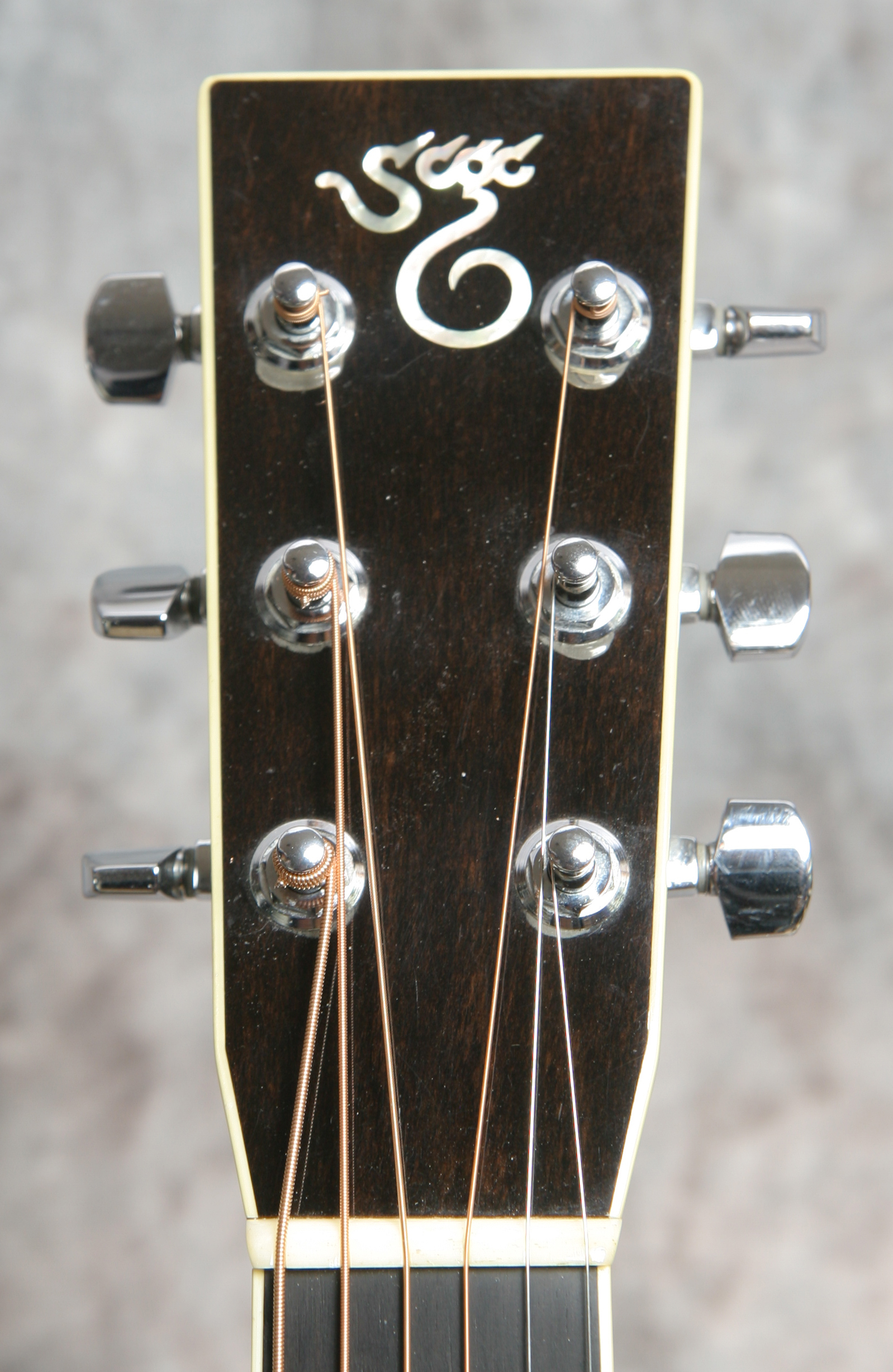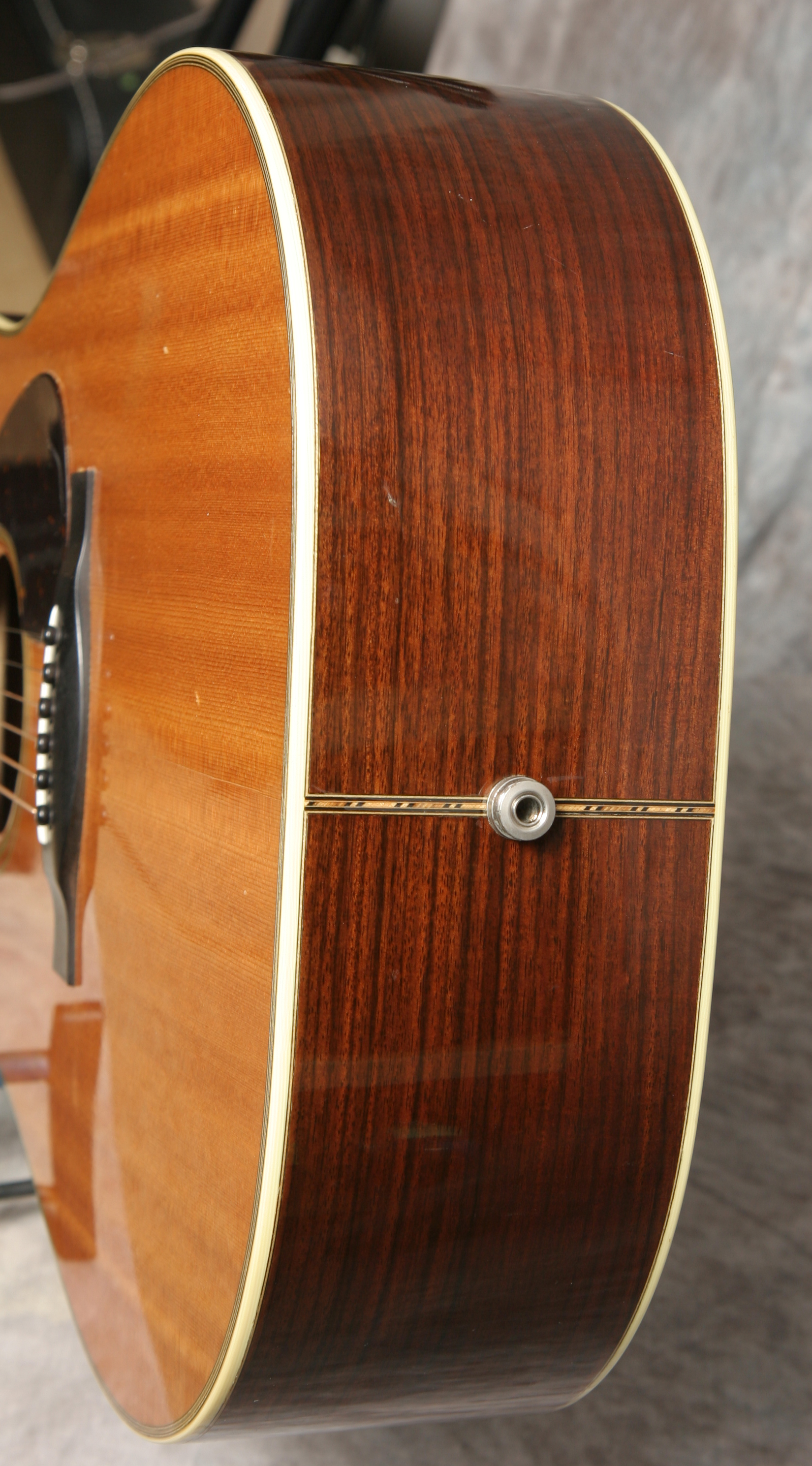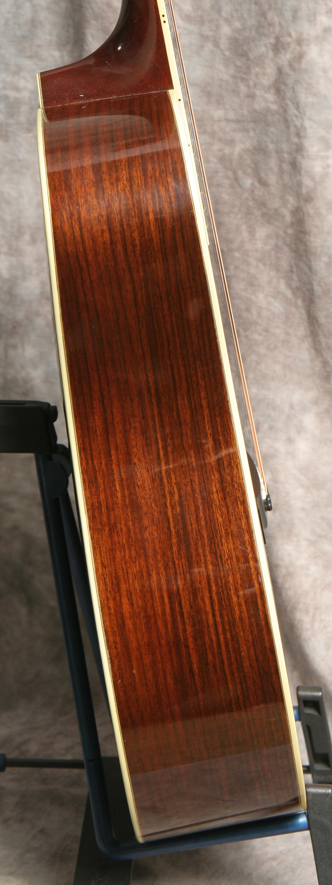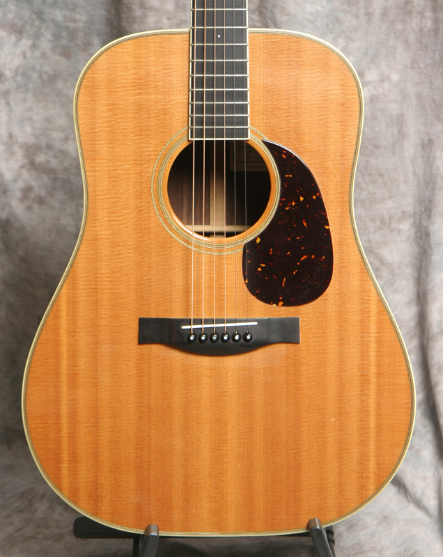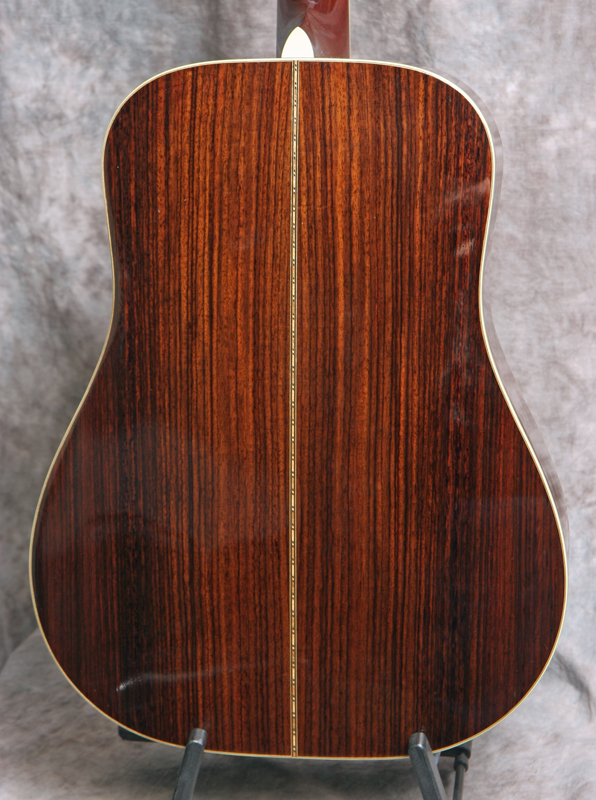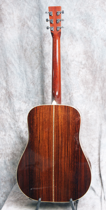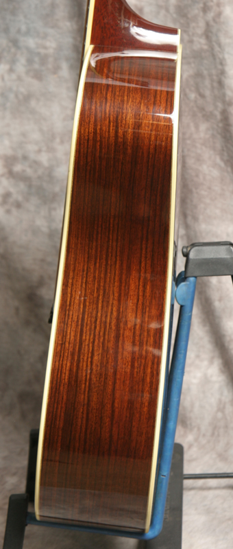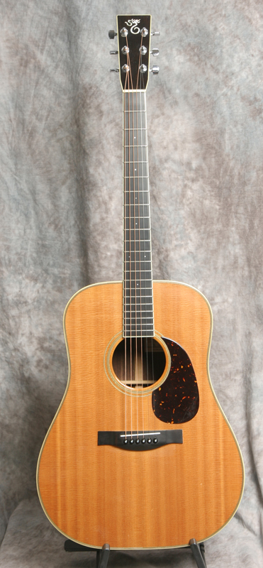 (Serial No. 2955) Very clean guitar. The Santa Cruz Guitar Company was one of the earliest boutique guitar builders. Richard Hoover started building guitars around 1968, when information on the topic was hard to find. By 1976, Hoover, along with William Davis and Bruce Ross, started the Santa Cruz Guitar Company to offer custom instruments to players who weren’t getting the quality or type of instruments they needed. I personally play a Santa Cruz dreadnaught. These are wonderful hand built professional grade guitars. Its true, you cannot built an instant 50 year old guitar, but the sound from this Santa Cruz comes close. This guitar has a Sitka spruce top with ivoroid binding, Indian rosewood back and sides, ebony bridge, mahogany neck with unbound ebony fingerboard, ebony peghead overlay with mother of pearl Santa Cruz logo inlaid, 25.375 inch scale length and 1 11/16 inch nut width. It also has the original nickel plated Schaller tuners, a bone nut and bone saddle. There is very little playing wear - anything that looks like an imperfection is likely a photo error. There is not even a strap button at the heel. Very powerful dreadnaught that will work well for bluegrass, but will play other music equally well. Good neck set, neck is straight, frets are fine. Comes with the original hard case.
