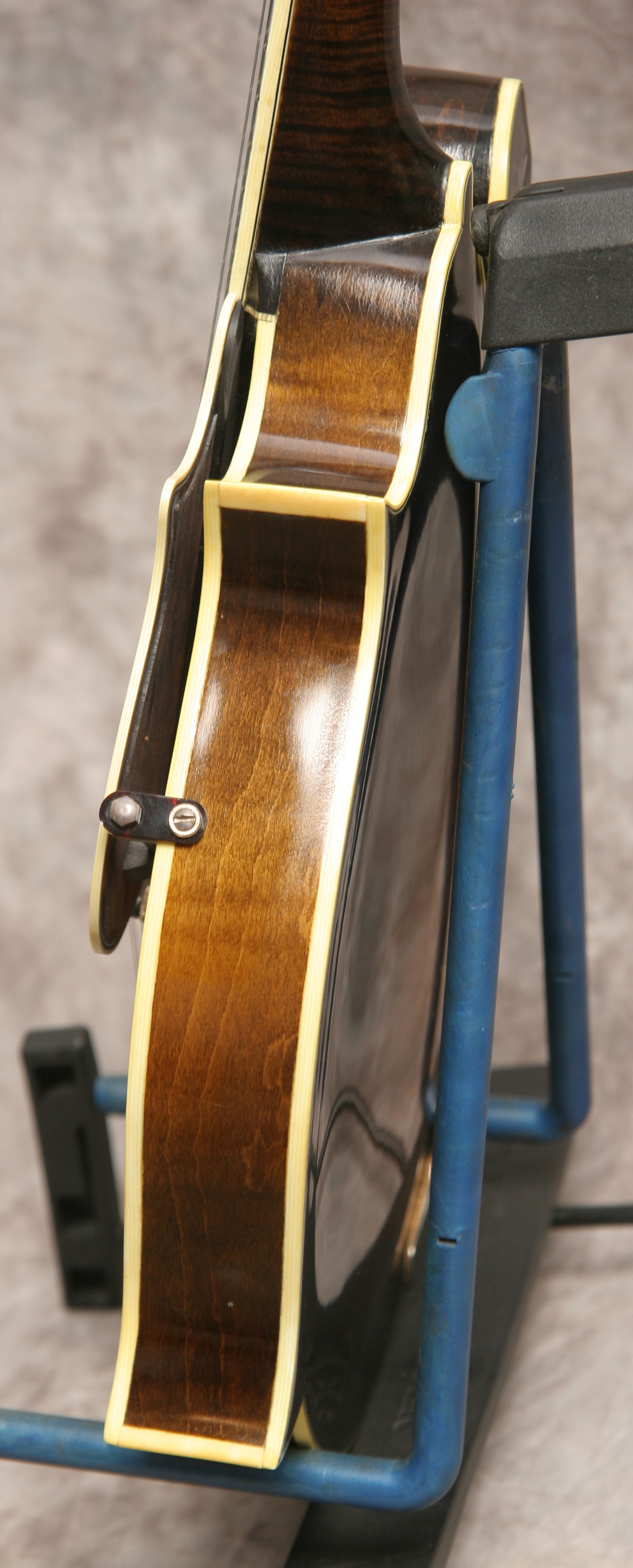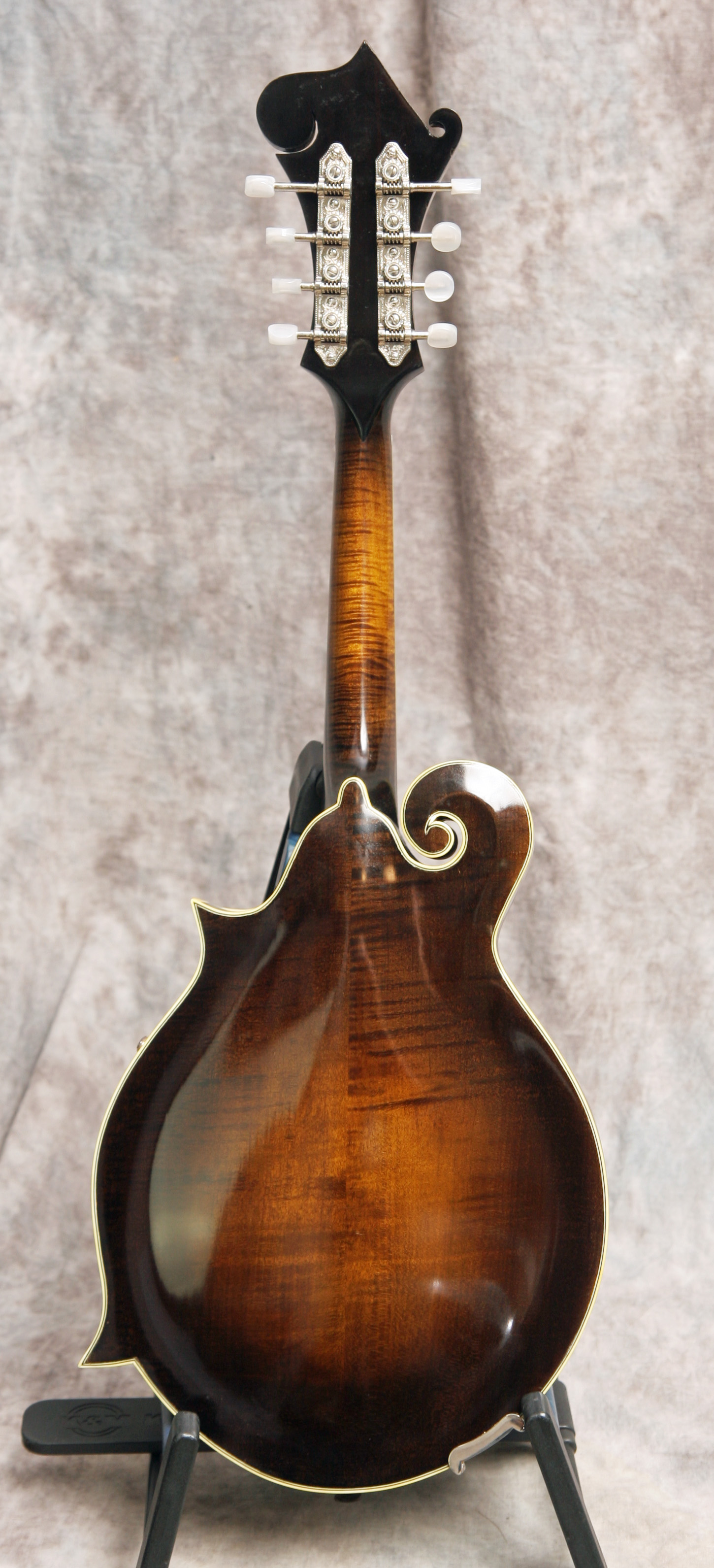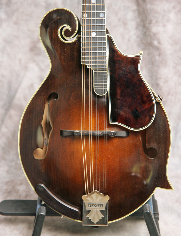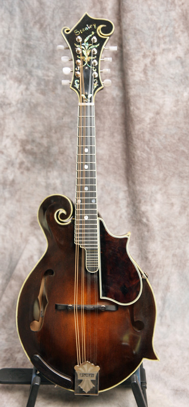 (Serial number 4) Near mint condition. This is out of my personal collection. Chris Stanley is a great picker and has owned several Loars and Ferns, so he knows tone. He's also an accomplished woodworker and luthier, so when he decided to build mandolins he had a pretty good head start. This mandolin is impressive - the fit and hand rubbed varnish finish is great, the action is easy and the tone is there. The back woood was chosen for tonal characteristics on each side as did Loar. This is how Loar built his F5s. The top is red spruce. All high grade parts - ebony fingerboard and bridge, pearl logo, silver plated hardware, and grained multi-ply ivoriod binding. Now, there's two camps on mandolin sound. The Loar F5 was made to play in ensembles, so it has a good midrange as well as bass and treble. Many modern mandolins are looking for a deep woody woof on the bottom, sometimes decent trebles, but usually lack in the mids. This mandolin is firmly in the Loar camp. Its a very well balanced mandolin across the strings, with strong even response. Yes you have the chop but you also have the rest of the notes as well.Here is a link to a video of the mandolin as played by Nathan Beaumont of Brandon, FL. Comes with a hardshell case