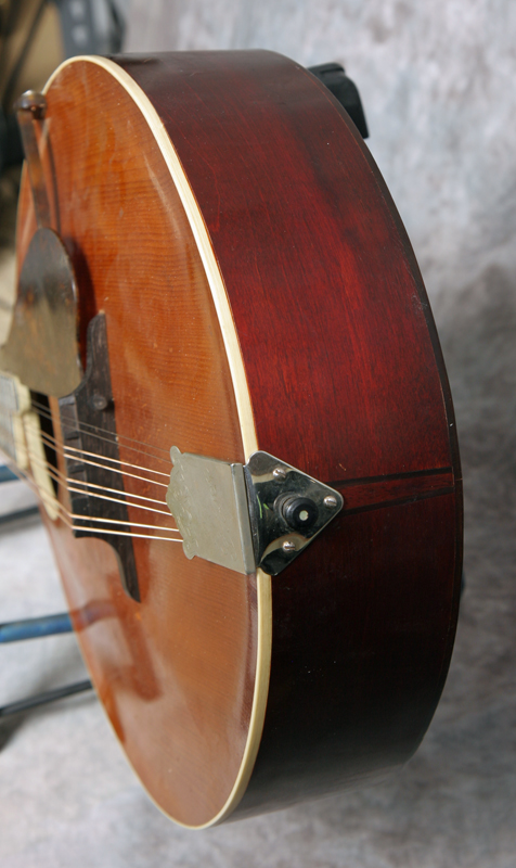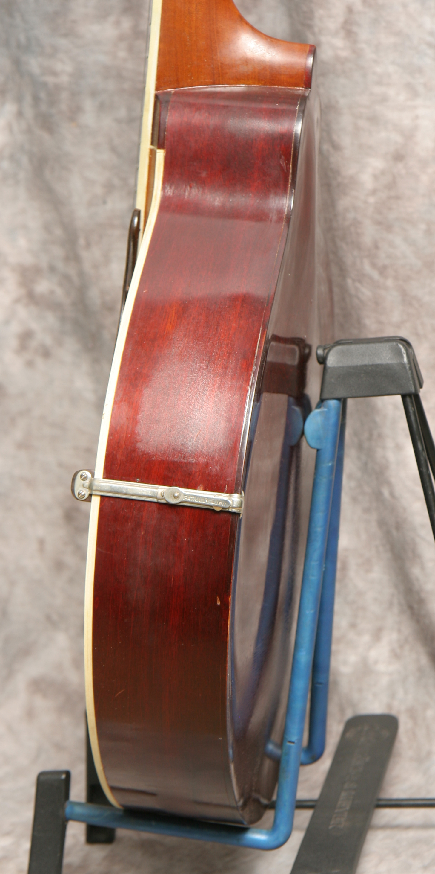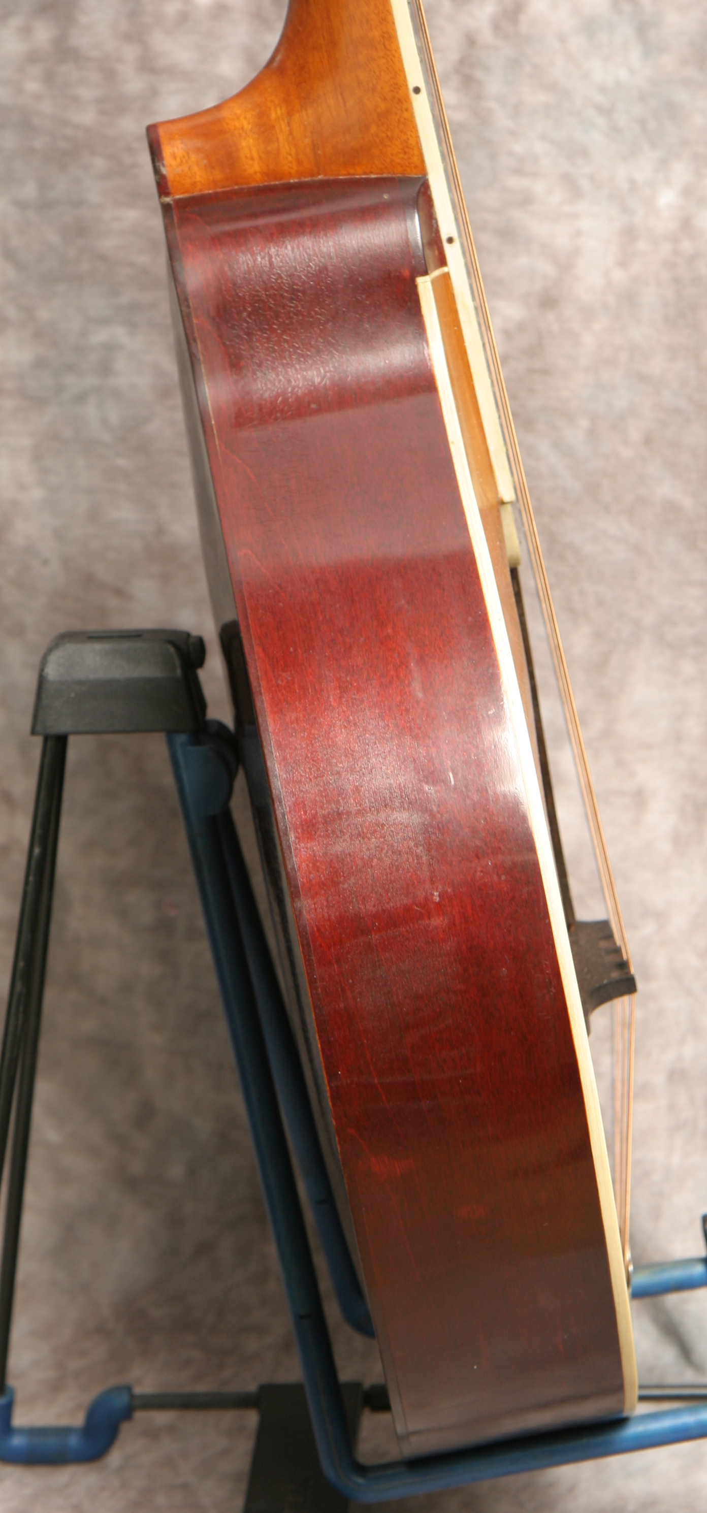 (Serial No. 936045 FON 3506) Excellent condition. The Gibson Mandocello is one of the great under-appreciated instruments of the early 20th century. Originally designed for the 1910s mandolin orchestra, these imposing beasts never found another home in any other style of music despite being wonderful and unique-sounding instruments to play. Double-strung and originally tuned in fifths starting with a C below the low E on the guitar, the mandocello has an imposing tone and deep resonance unlike any other fretted instrument. The late Stan Jay described it as "the voice of singing whales". This particular instrument is tuned GDAE and is intended to be played as an octave mandolin. It could of course be restrung and tuned CGDA. This example is a wonderful sounding instrument and is set-up well with excellent action and playability. An invisible carbon fiber truss rod was added in the neck under the fretboard to ensure the neck will never bow. The top shows some minor sinkage under the bridge, typical of these instruments. The neck angle and bridge height are perfect, with a nice low action. All finish and hardware is original. Other than the addition of the truss rod, no repairs noted. Scale length is 24 3/4 inch and the nut width is 1 9/16 inch. Just set up by my luthier Richie Dotson. Here is a short video clip of this instrument played by Richie. Comes with the original hardshell case which is in nice condition.