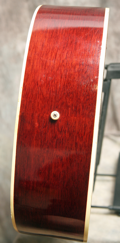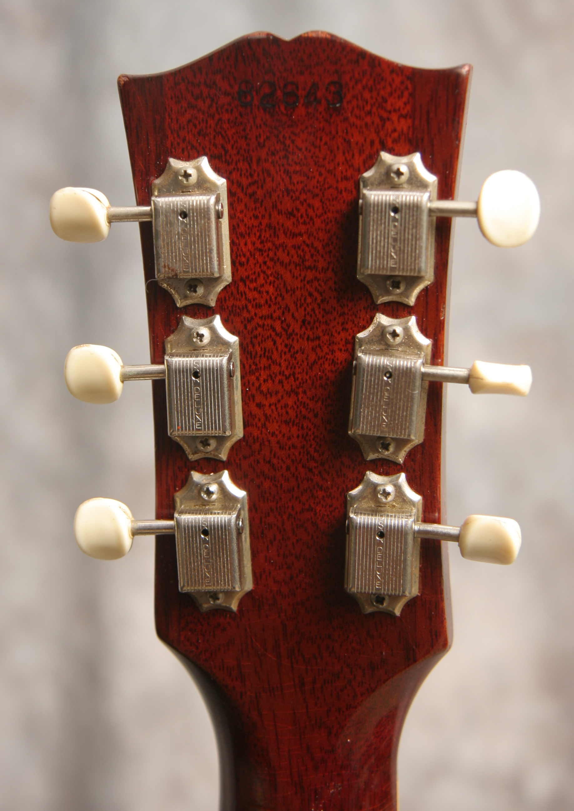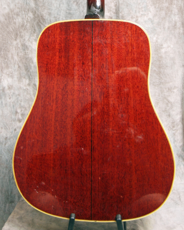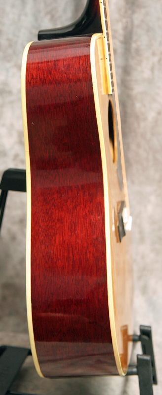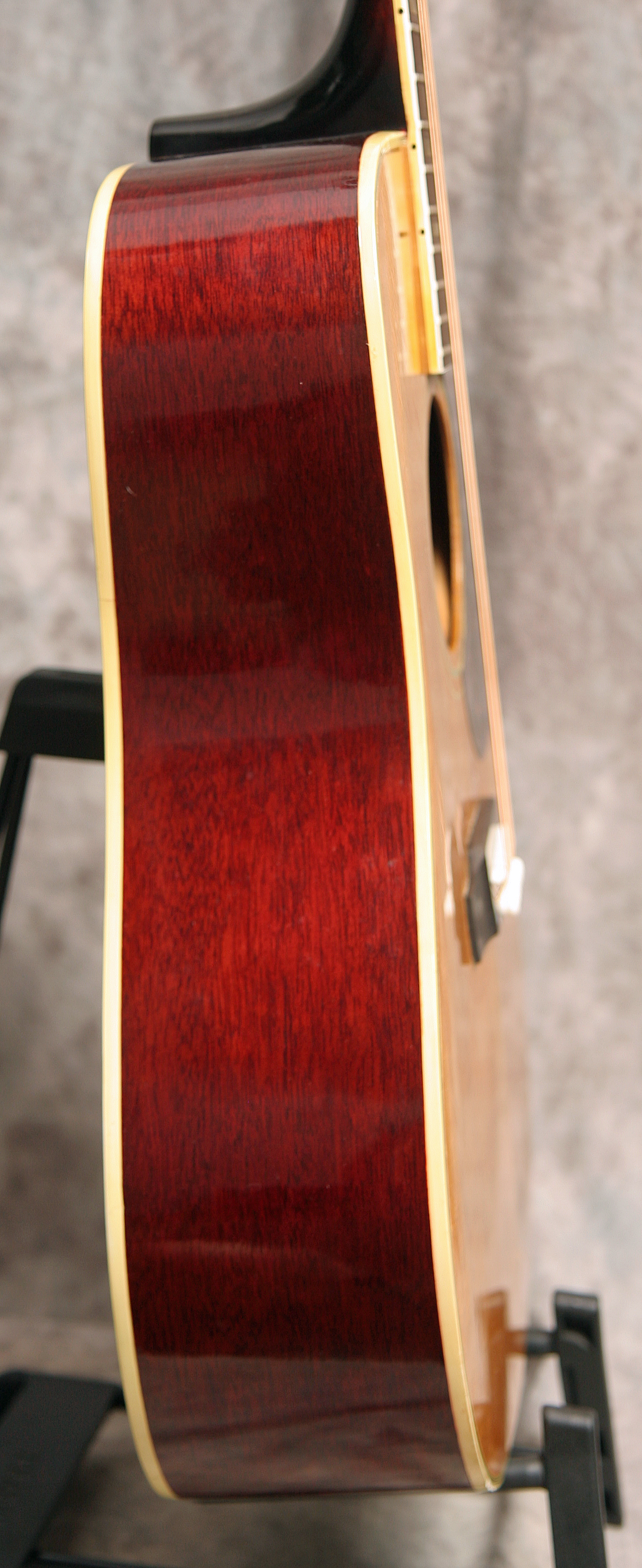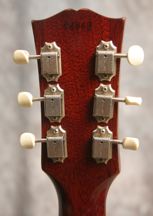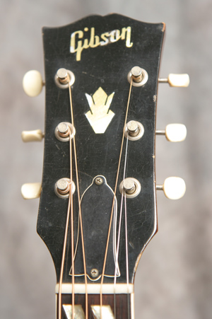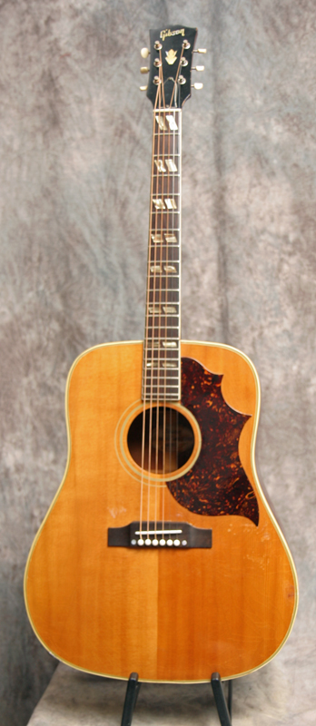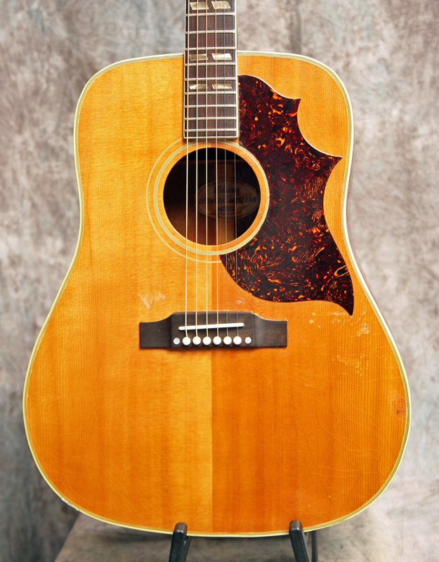 (Serial No. 82643) Excellent condition. The Country Western is the same model as the Southern Jumbo but with a natural finish top. Otherwise the guitars are identical. Fabulous sounding guitar that really nails the Gibson midrangy slope shoulder dreadnaught sound. Natural top finish, Sitka spruce top, mahogany back and sides, Brazilian bound rosewood fretboard with double parallelogram inlays and Brazilian bridge, and seven layers of top binding. Still has the tall thin 50s style top and back braces (like the Hummingbird) and the wider 1 11/16 inch nut. The Kluson tuners are original. The frets are in good shape. No repairs noted. Very clean guitar showing minimal playing and handling wear. Plays great with a nice low action as the guitar was set up by luthier Bob Peterson. Has a nice big open woody sound with strong volume and good midrange - exactly what you are looking for in a 1960s Gibson dread. Comes with a newer hardshell case.
