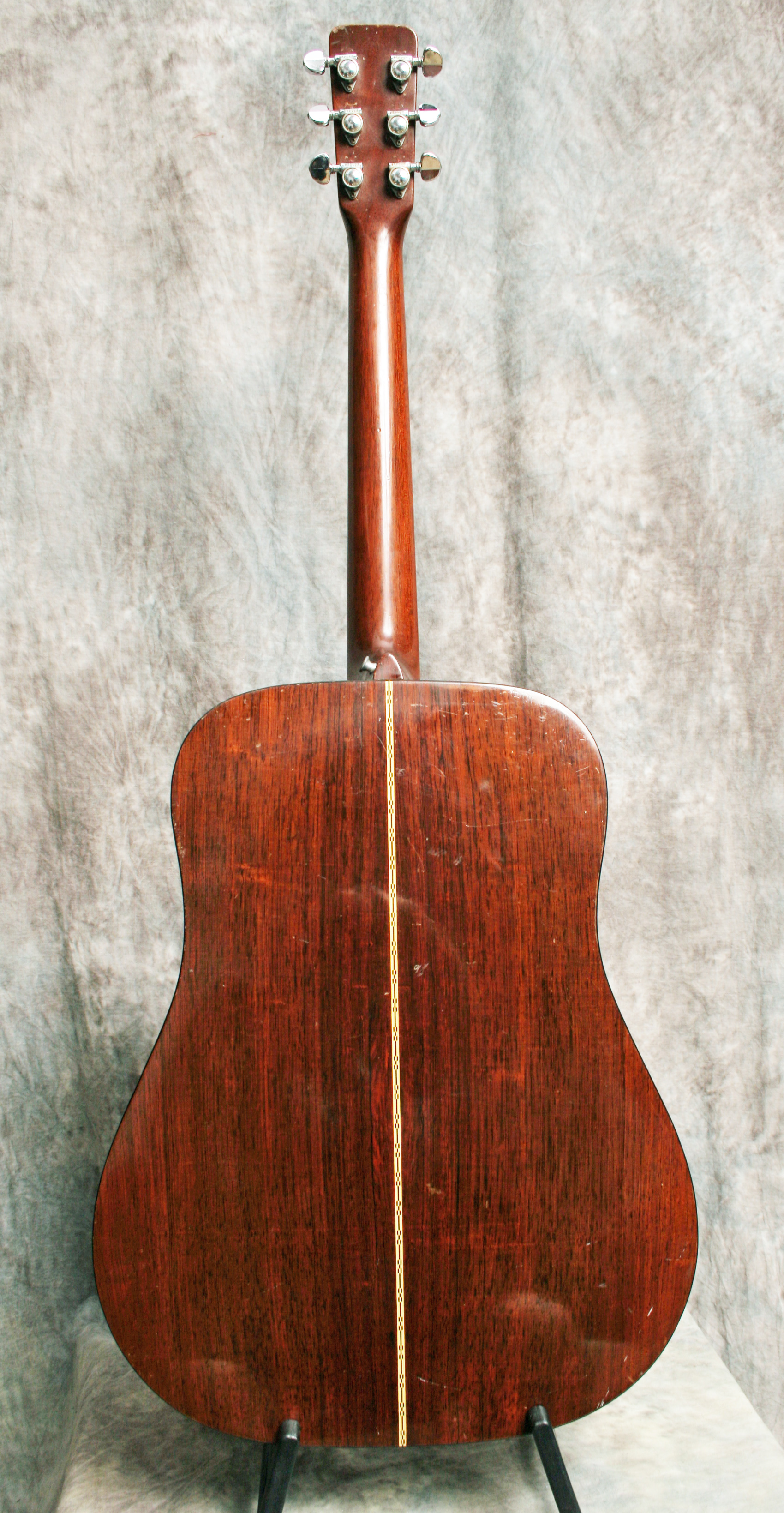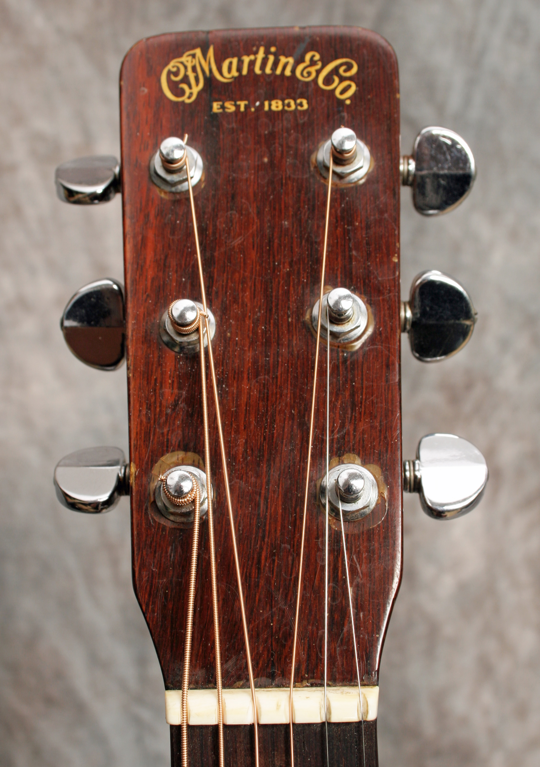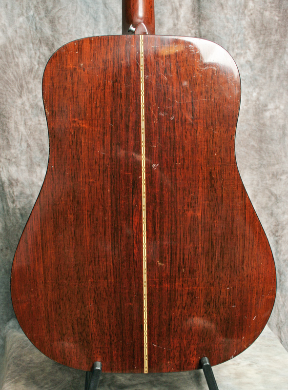 (Serial No. 201106) Excellent structual condition showing some playing wear. The D21 can be thought of as a rosewood D18. It has a solid Brazilian rosewood back and sides and a solid Sitka spruce top. Tuners have been changed from Klusons to patent applied for Grover Rotomatics. Neck is straight, frets are good, neck looks like it has been reset as the action is low and comfortable. Has some finish checking on the top and back and and the usual playing wear of a guitar used to make music for 60 years. Has the tortoise binding and pickguard, Brazilian rosewood fretboard and bridge, 1 11/16 bone nut, the through saddle, and the small maple bridge plate. This guitar is a vetern of the campfire wars - there is significant pickwear on the top, right below the pickguard. This guitar has that solid Martin "boom" you need in a good bluegrass guitar. Plays very easy with a nice low action. This is an well played, excellent sounding D21. Why play the same guitar everyone else plays? Comes with a very nice newer hardshell case.