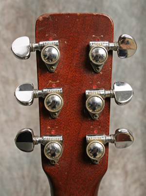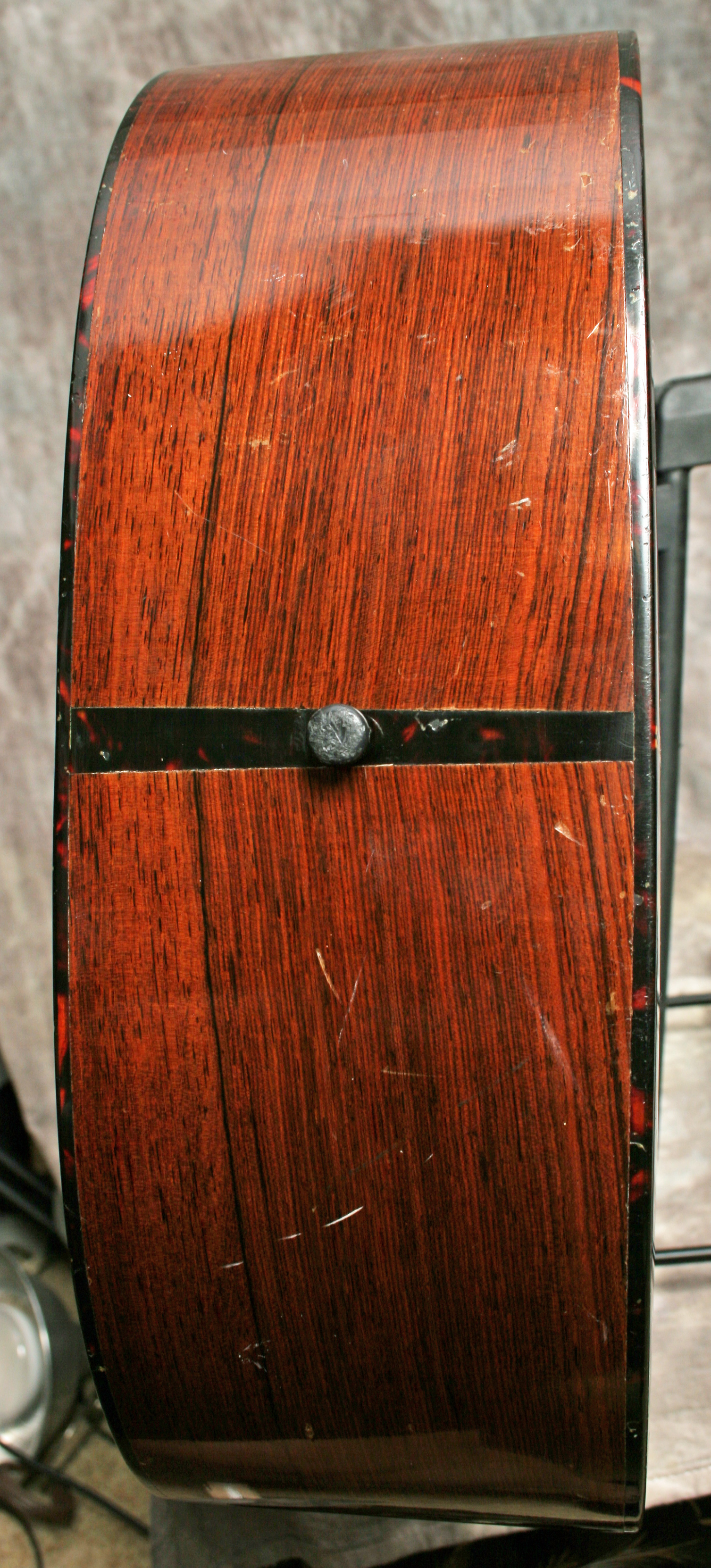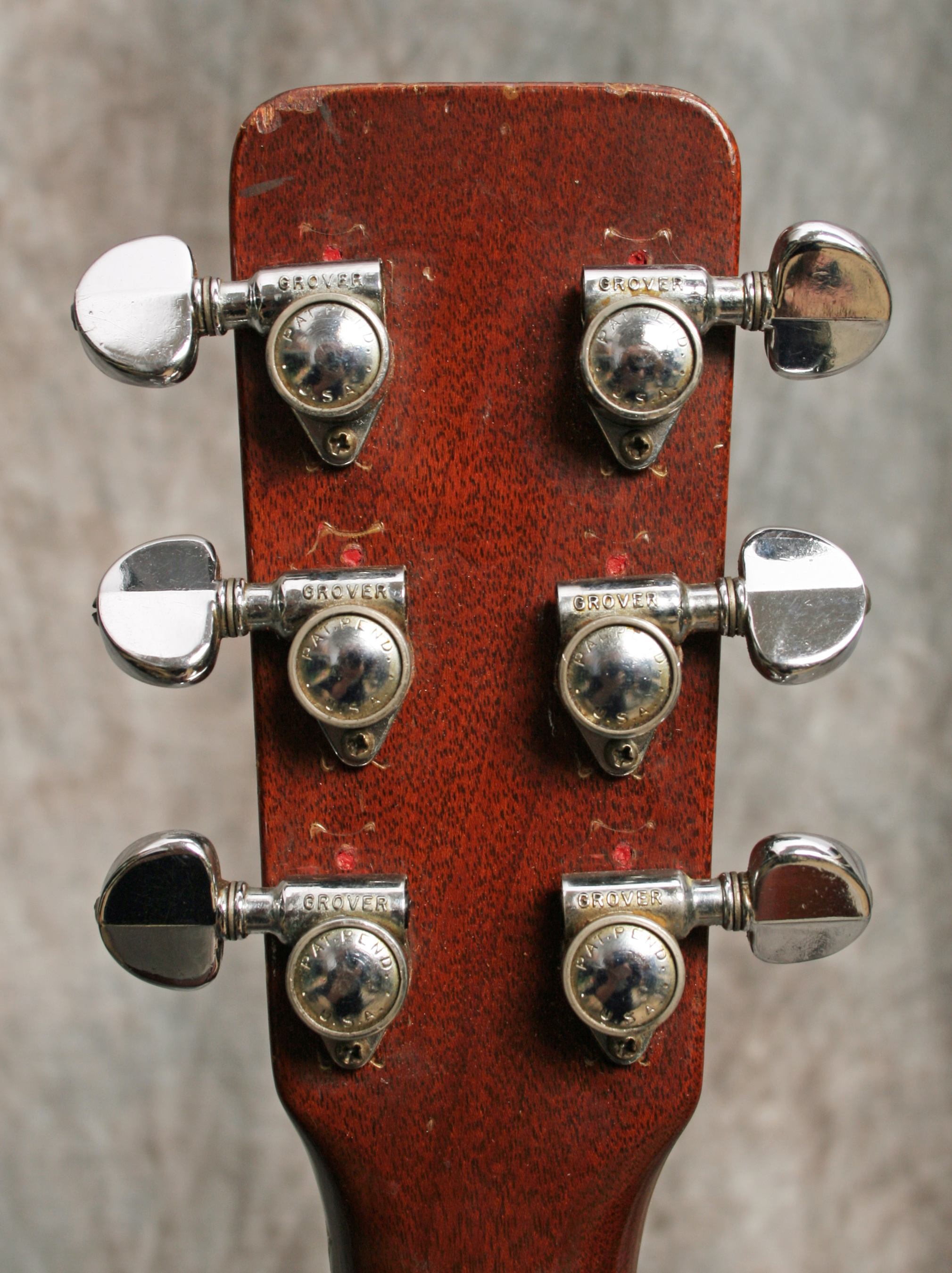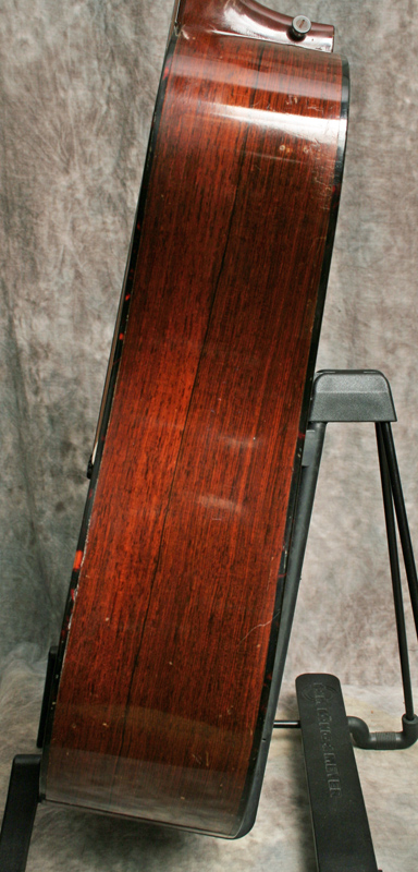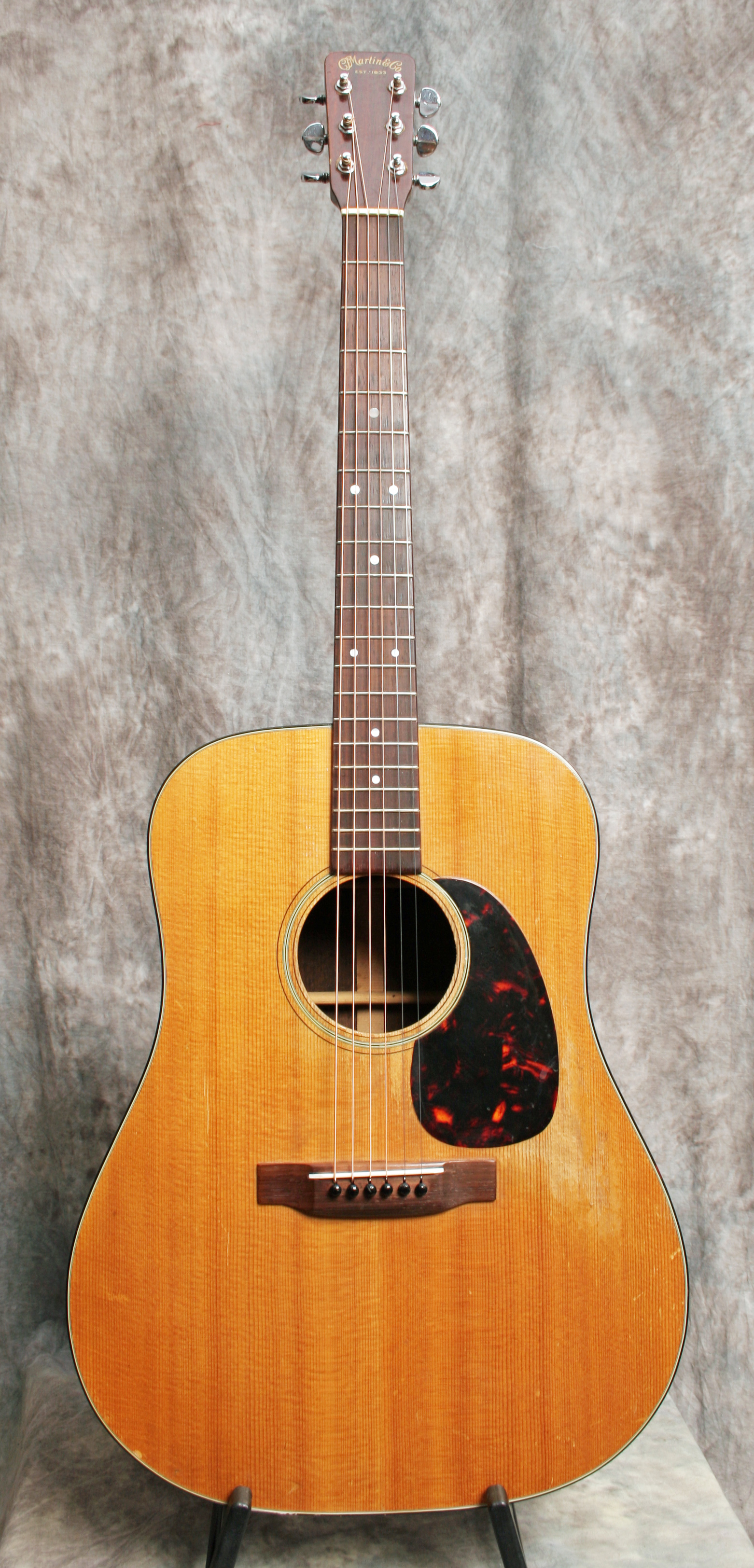 (Serial No. 201106) Excellent structual condition showing some playing wear. The D21 can be thought of as a rosewood D18. It has a solid Brazilian rosewood back and sides and a solid Sitka spruce top. Tuners have been changed from Klusons to patent applied for Grover Rotomatics. Neck is straight, frets are good, neck looks like it has been reset as the action is low and comfortable. Has some finish checking on the top and back and and the usual playing wear of a guitar used to make music for 60 years. Has the tortoise binding and pickguard, Brazilian rosewood fretboard and bridge, 1 11/16 bone nut, the through saddle, and the small maple bridge plate. This guitar is a vetern of the campfire wars - there is significant pickwear on the top, right below the pickguard. This guitar has that solid Martin "boom" you need in a good bluegrass guitar. Plays very easy with a nice low action. This is an well played, excellent sounding D21. Why play the same guitar everyone else plays? Comes with a very nice newer hardshell case.