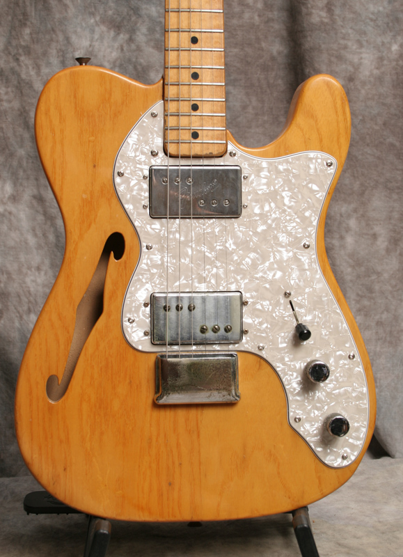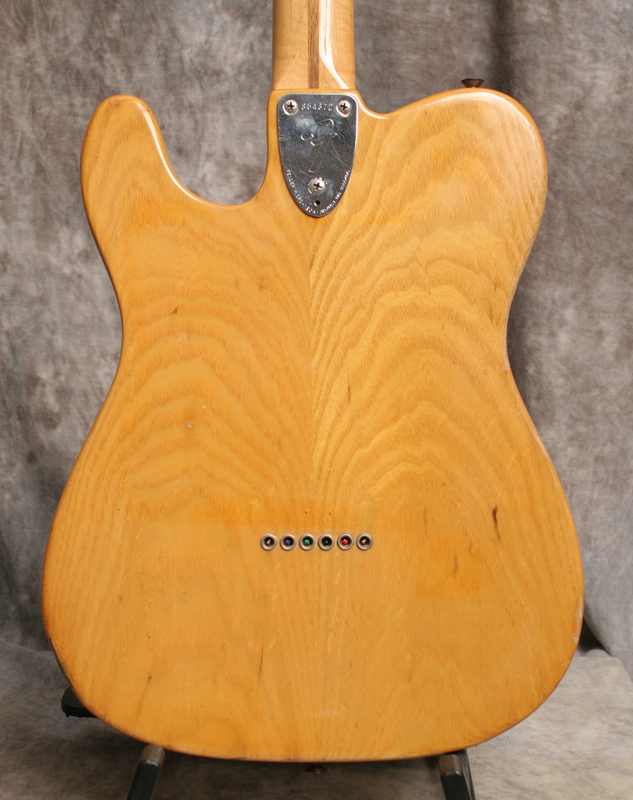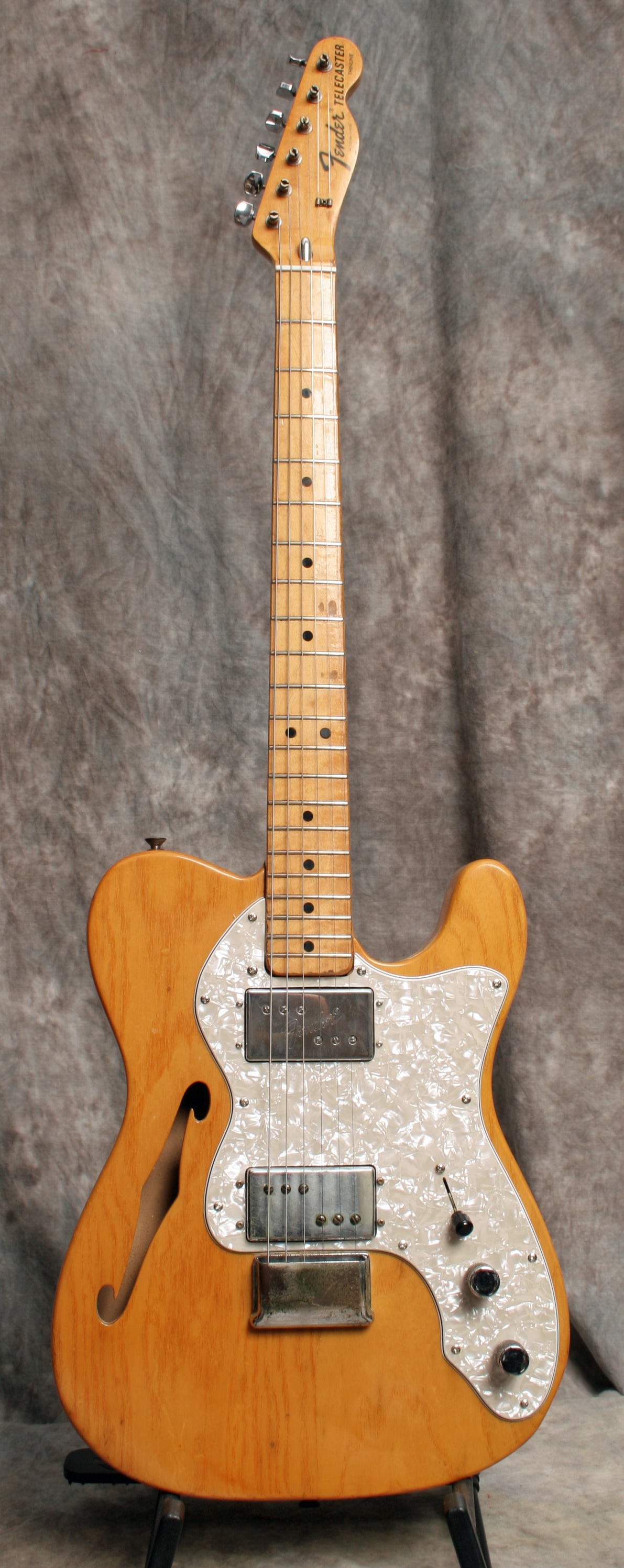 (Serial No. 354372) Very good condition, bought from the estate of the original owner. Built in California. This is the classic Telecaster Thinline in a natural finish. Has the black logo and single string tree on the peghead. Neck is dead straight with a nice and slightly chunky "B" profile. Has the original frets that have been dressed but are still playable. Completely original finish. The bridge pickup is original, the neck pickup is a recent Fender pickup. The pickguard has been changed as the original had shrunk a bit and would not line up with the screw holes. The original guard is included in the case. All other hardware and electronics are original. No routes and no structural repairs. Pictures of the electronics and body/neck stamps are available, just ask. Light weight at 7 lbs 1.6 oz. Shows some minor edge wear and scuffing, just enough to be cool. Just set up by my local luthier Marty Beeson. It plays like butter. Good 70's Telecasters are getting harder to find and here's a chance to get a nice one - and it sounds good, too! Comes with the original hardshell case.