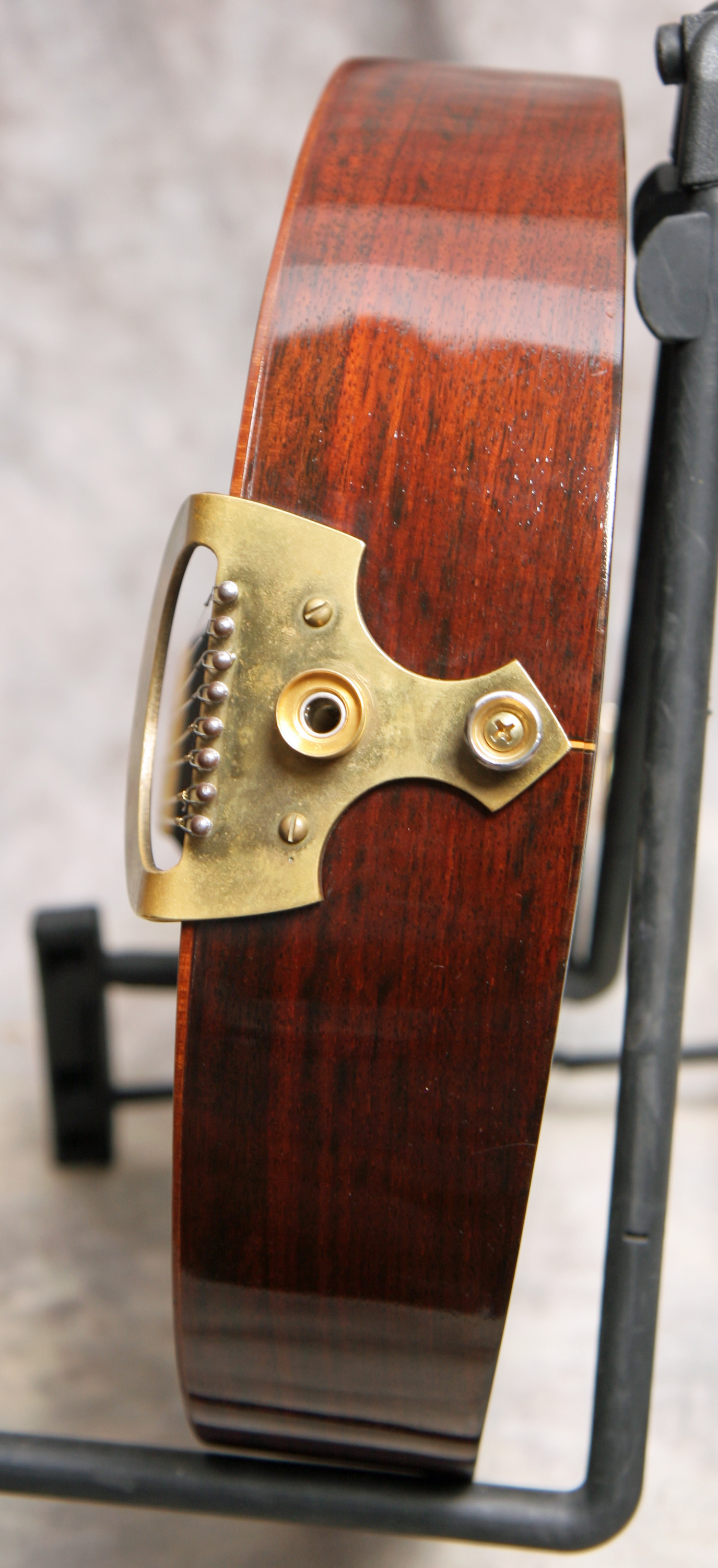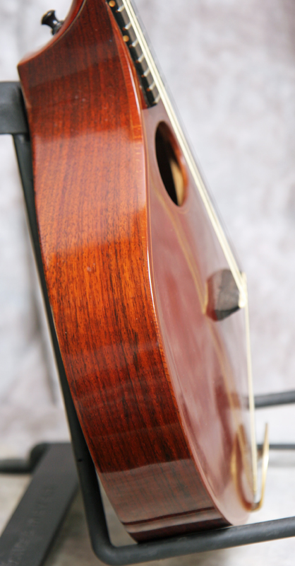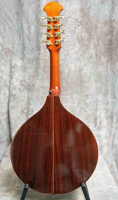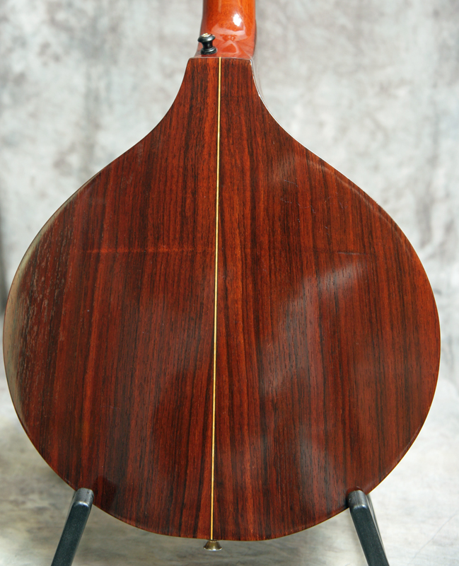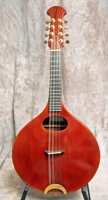 (Serial # none) Excellent condition. Stefan Sobell builds the finest instrument for Celtic music in the world. This is the sound you hear on all the Irish and Celtic recordings. This is an earlier mandolin for him as it has the rosewood back and sides and a cedar top. This 12-1/2 inch wide mandolin also has a mahogany neck, herringbone top trim, fully bound body, gold tuners, brass Sobell one piece tailpiece, and an ebony fingerboard. The fingerboard is slightly wider than a Gibson at 1 7/16 inch to allow quick rolls and triplets. Scale length is a bit longer than a Gibson at 14 3/8", which gives amazing sustain. Neck is straight, neck angle is good, frets are fine. The bridge is original and is fit well to the top. There is a Mcintyre pickup on the underside of the top and the mandolin is fitted with an endpin jack. Action is low and comfortable. Very loud instrument that will cut through sessions with ease. Deep woody round tone and very clear notes. Comes with the original blue fiberglass Jack Clark hardshell case.