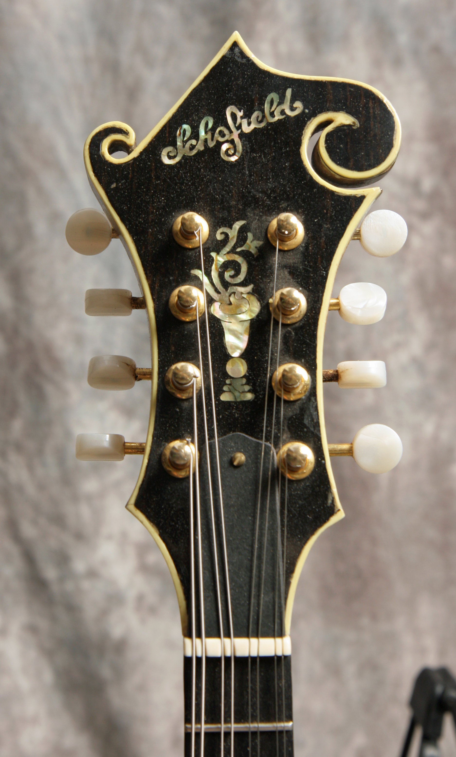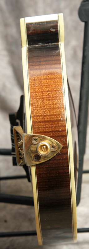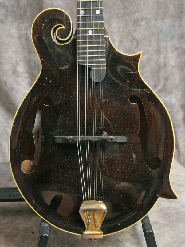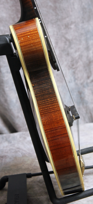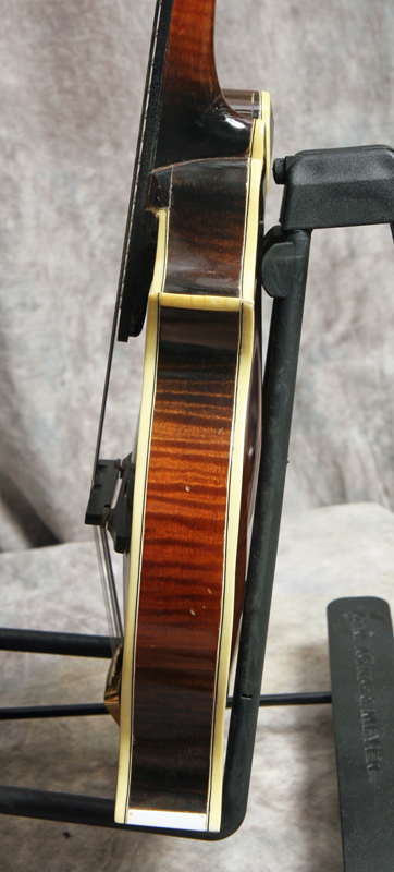 (Serial Number:150) Excellent condition. John has been building mandolins in the Shenandoah Valley of Virginia for years. As he is right in the heart of bluegrass country he knows the sound of a good mandolin. Solid brown top finish and a sunburst back and sides. This one has nicely flamed maple back, sides and neck, Sitka top, fully bound body, neck and peghead, 1-1/8 inch nut, flat ebony fingerboard and bridge, a gold Monteleone style one-piece tailpiece, and gold tuners. The fretboard is deliberately shortened to elinate pick click. The mandolin shows a little playing and handling wear, but no cracks, repairs or refinish. Excellent sound - has a nice chop and good woody deep tone. Comes with a hardshell case.