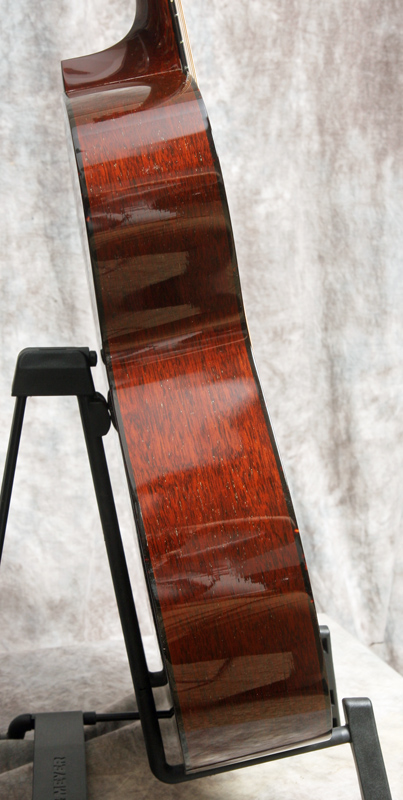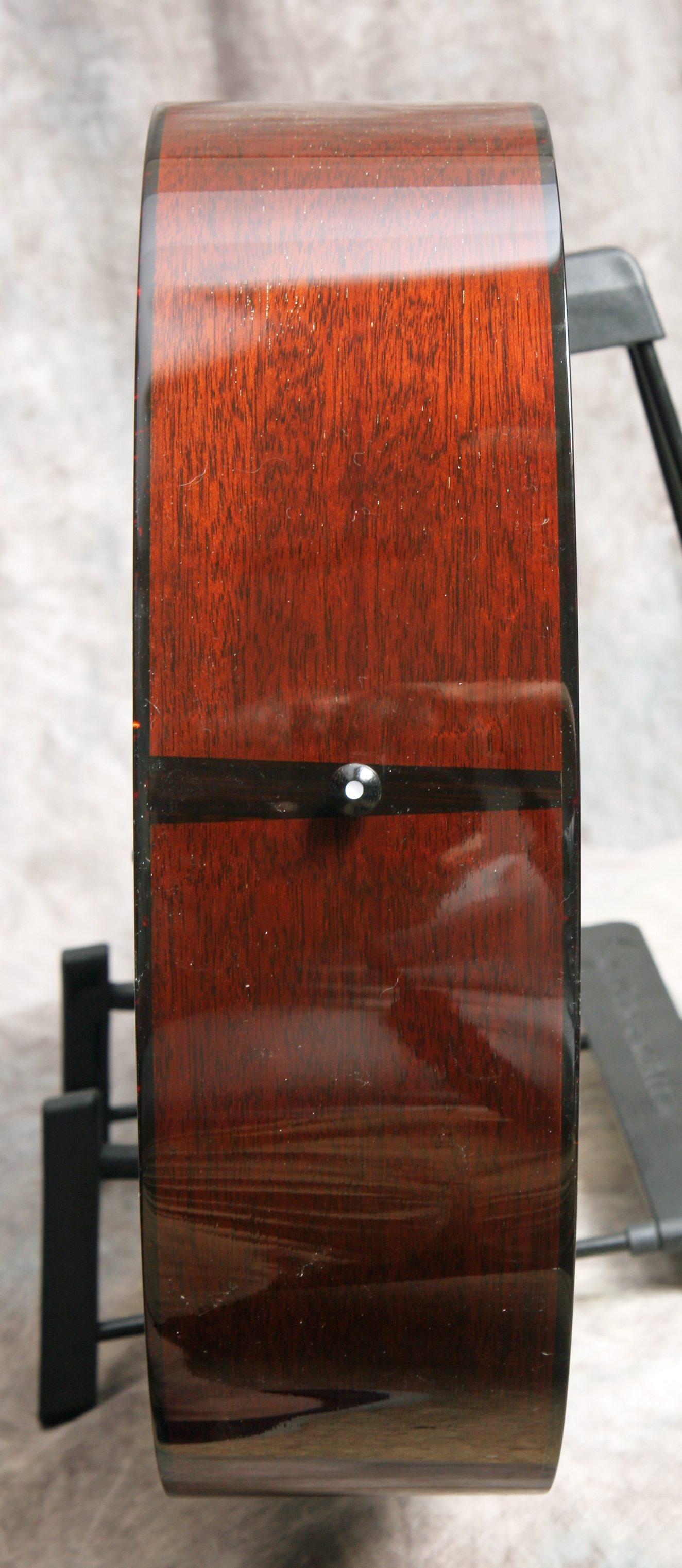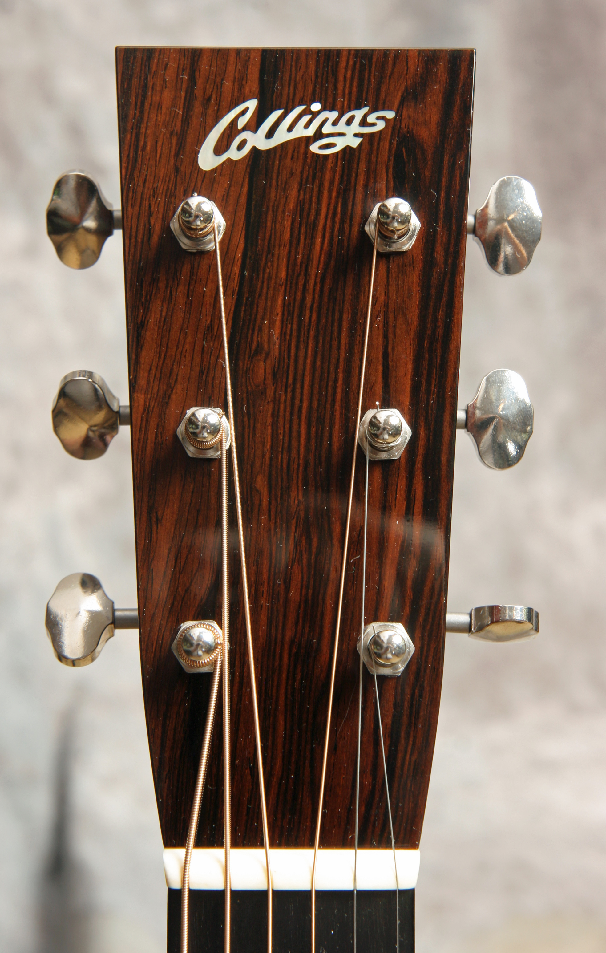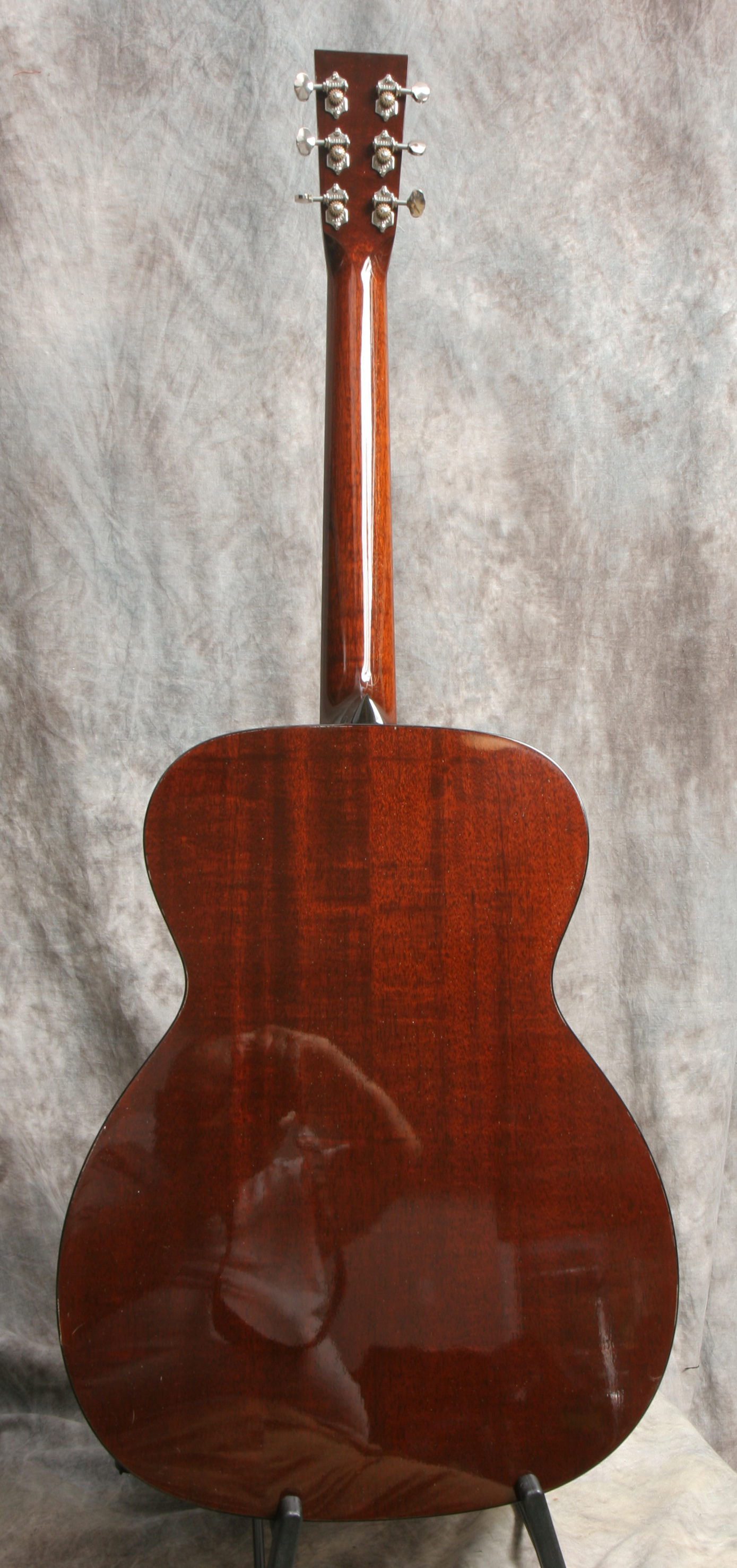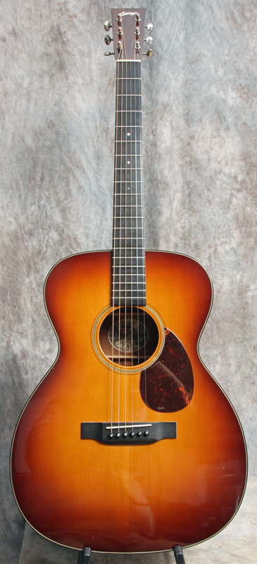 (Serial Number:6250) Excellent plus condition. The Ochestra Model (OM) is one of the most versatile guitars out there. It excells as fingerstyle steel string guitar, but it flatpicks pretty well too! The compact shape makes the Collings OM equally easy to handle onstage or when sitting on the couch, and the relatively shallow body – barely over 4 inches deep – results in a balanced tone and immediate response. This guitar features a mahogany back and sides with a Adirondack red spruce top and a varnish finish. This guitar features a Honduran mahogany back and sides with tortoise body binding and ebony butt wedge, Adirondack red spruce top with scalloped braces, and a sunburst lacquer finish. The fretboard and bridge are ebony. Scale is 25.5 inches with a 1.75 inch bone nut. The ebony belly bridge has 2 3/16 inch string spacing at the bridge. Fitted with nickle Waverly tuners with butterbean metal buttons. This guitar sounds amazing. When you take excellent starting materials and a world class builder, the end result is a superior instrument. Comes with the original hardshell case.