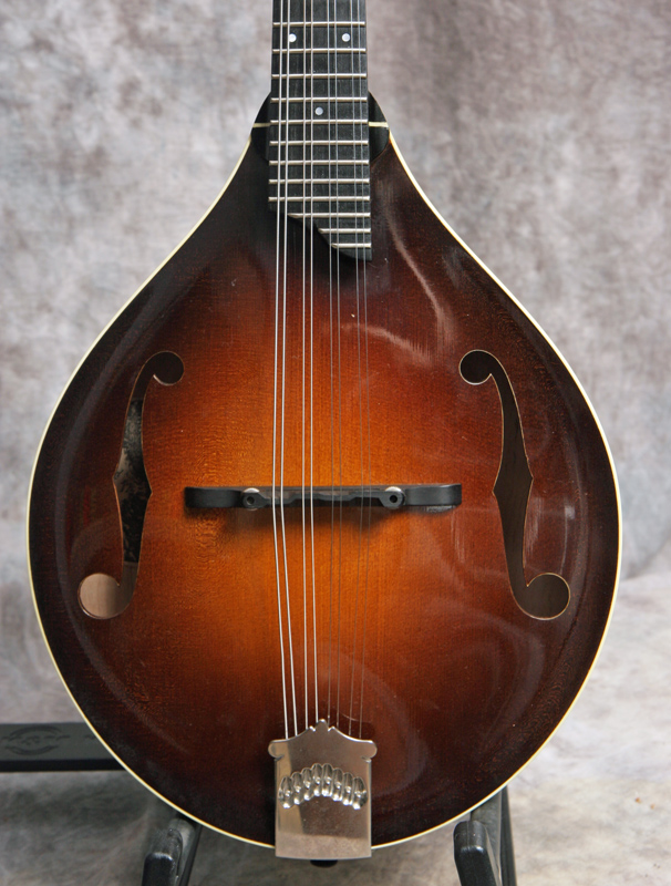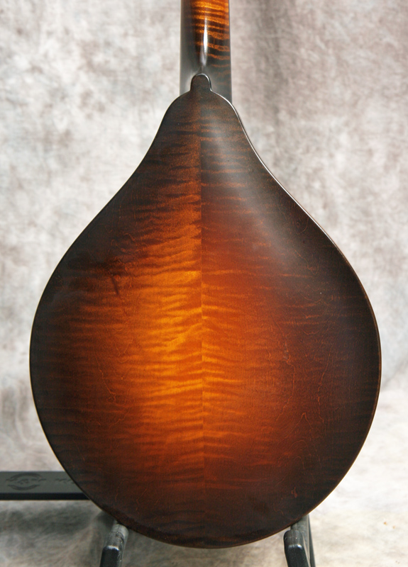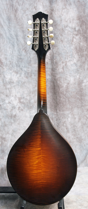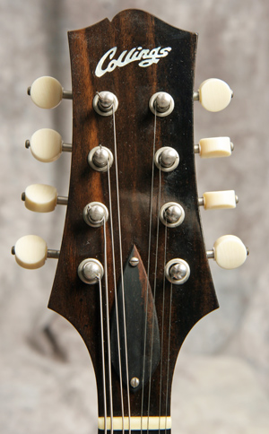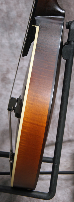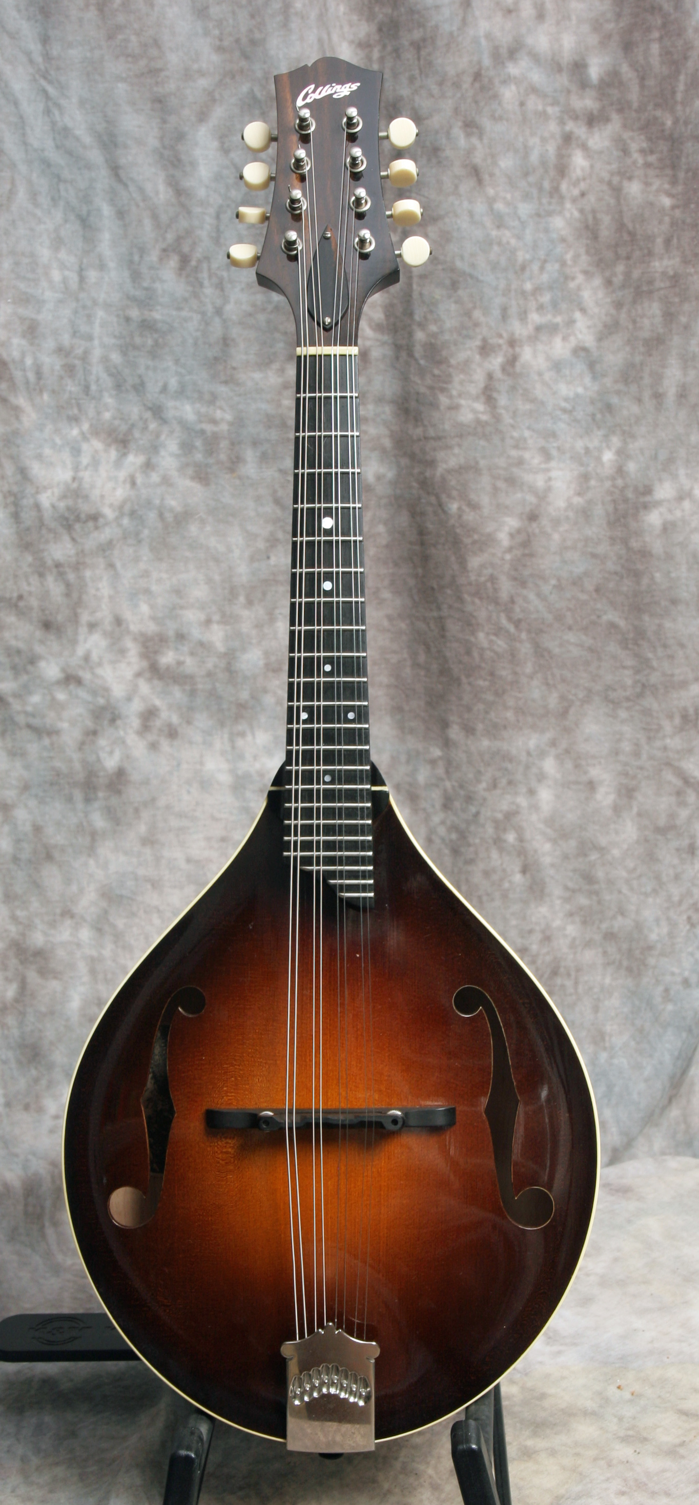 (Serial No. 1054) Near mint condition, sunburst satin lacquer finish, built in Austin,Texas. I think the original owner did not play mandolin, as there is no playing wear and just the slightest of handling wear. Collings mandolins are built to the same high quality standards as their guitars. Plays nice with good low action and sounds pretty good, too. This mandolin has a big, rich voice with great projection and a powerful chop - everything you'd expect from a Collings. Nice clean mandolin with an Englemann spruce top and heavily flamed Eastern maple back and sides. The mandolin is fitted with satin nickle tuners with black buttons. Top bound only in tortoise. Has a 1 1/8 inch nut and jumbo frets on the radiused ebony fretboard, which is slightly shortened by Collings to eliminate pick click. Has a soft V profile neck. Fitted with the Collings one piece tailpiece. No repairs, refinish, or other issues noted. Comes with the original Collings TKL hardshell case.