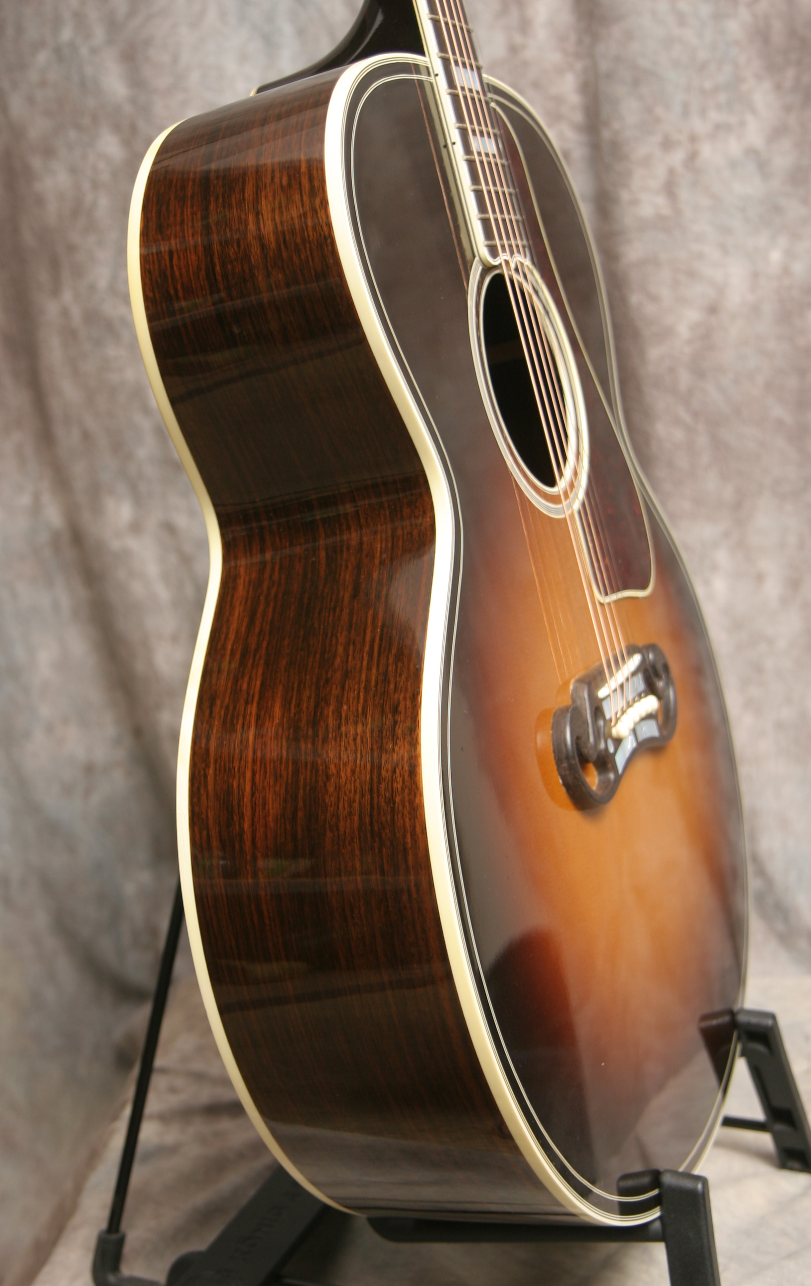 2006 Gibson Custom Shop J200 Western Classic Guitar(Serial No. 1656017) Mint condition with a beautiful sunburst lacquer finish. The J200 has been called the "King of Guitars" and rightly so. The Western Classic J200 was built in the Gibson Custom Shop, so it was built with the best woods Gibson had in stock. Like the original J200s in 1937, this guitar has a rosewood back and sides. It has a AAAA grade Sitka top, a maple neck, ebony fretboard and a classic rosewood mustache bridge. Plays perfectly with the big sound these are known for. Here is a video clip of this guitar played by Nathan Beaumont of Brandon, FL, and another video clip by Rod Highsmith of Peace Guitars. Comes with the original Gibson hard shell case, also very clean.