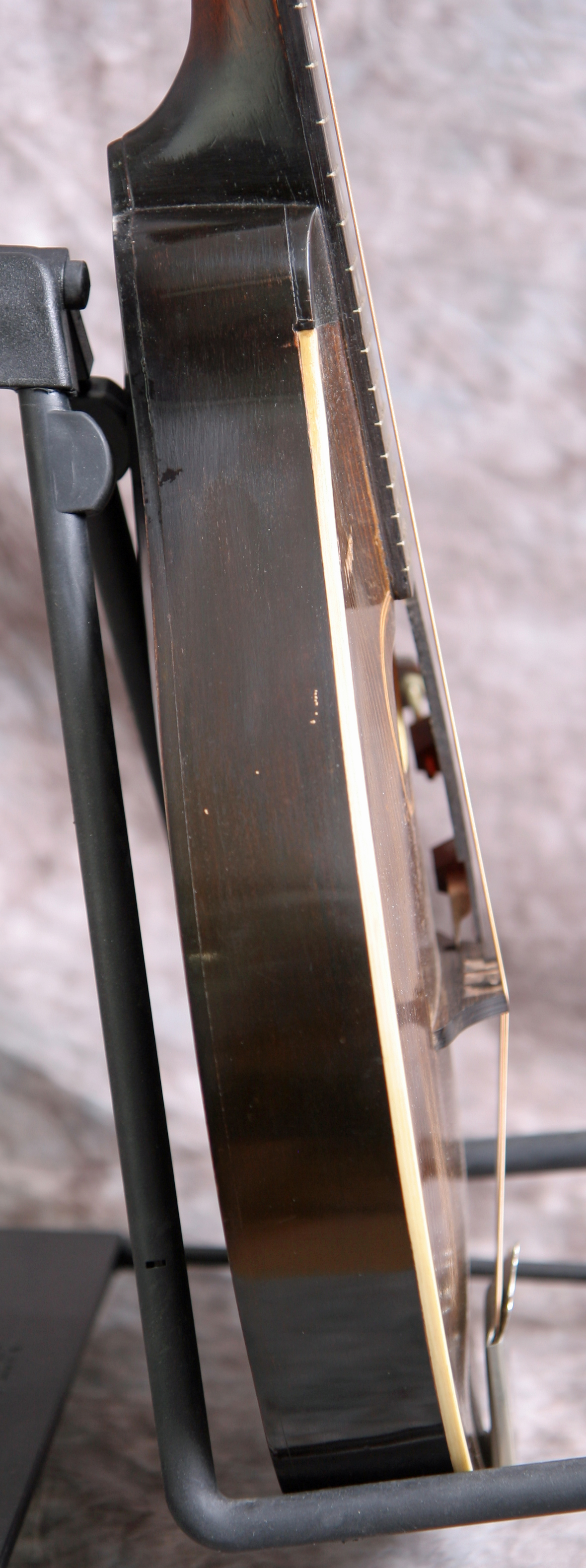 (Serial #61368 FON 11306) Excellent condition, Sheraton Brown top finish with dark back and sides. Peghead is blank as made by Gibson, but it has the original Gibson label inside. Top bound only. All hardware and finish is original, showing a little playing wear. Neck is straight, the frets are in good shape, and the tuners work well. Original tailpiece and cover. Fitted with a Gibson post-1922 pickguard. The mandolin plays and sounds great. Just partially refretted and set up by my luthier Richie Dotson so the action is low and playable. Has a round ringing tone with good volume. Excellent for Celtic or old-time music. Original 1930's Gibson hardshell case included.