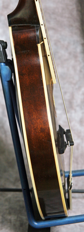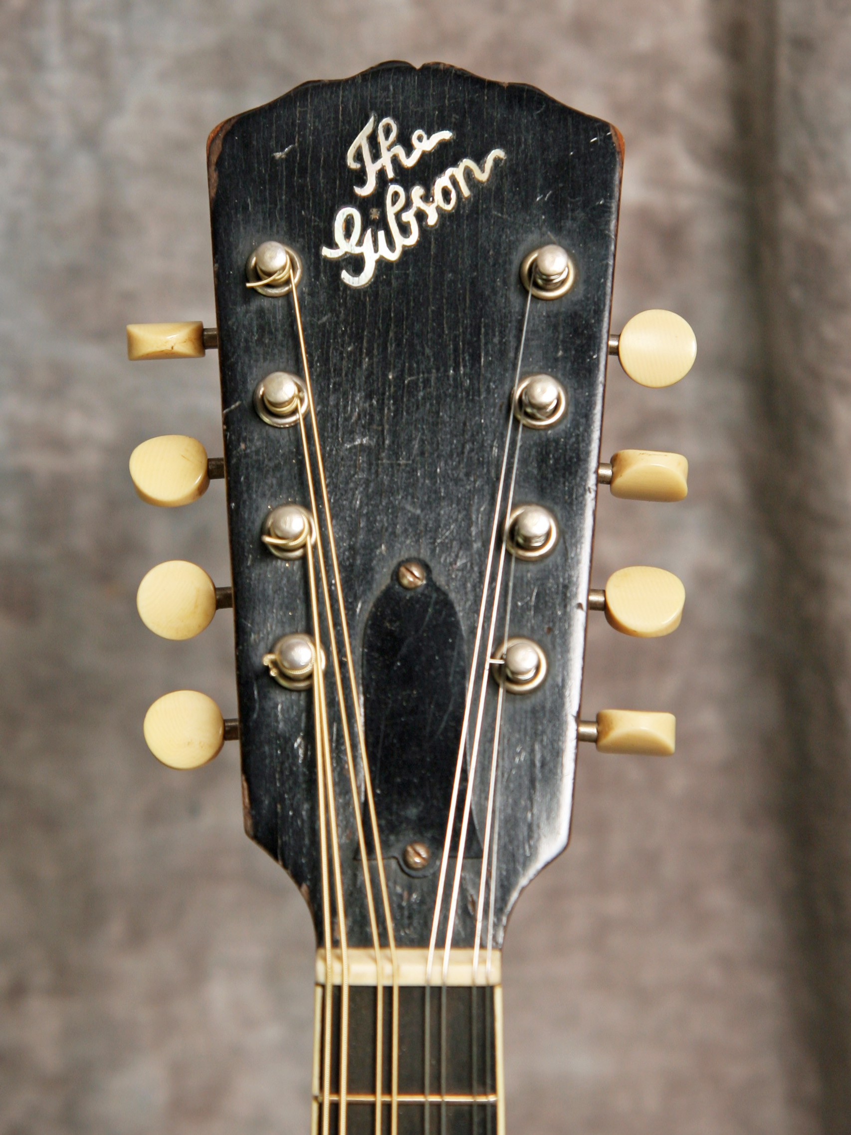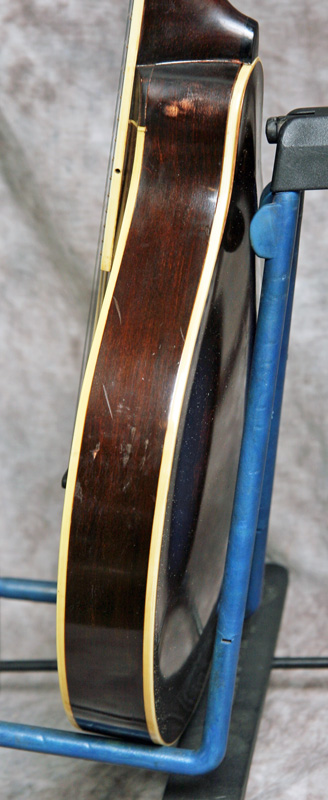 (Serial No. 71864 FON 111763) Very clean mandolin in excellent original condition. The paddle peghead mandolins just prior to the snakeheads have all of the Loar sound and improvements with a slightly wider fretboard. They sound great! The serial number indicates a 1923 sales date, but the factory order number indicates the mandolin was made in 1922. The label is marked "A2". It has the inlaid pearl logo, bound top, back and fingerboard and the double thin sound hole rosettes. This is a classic Loar era instrument with the sound that you expect from this period. Plays smoothly with excellent volume and tone. This is just a great sounding mandolin - an excellent demonstration of why many pickers believe the Loar era mandolins are the best ever made by Gibson. For a short video clip of this guitar played by James Hurlburt of Lakeland FL click here. Excellent condition with some very minor finish wear and checking. No breaks, cracks or refinish. Original Sheraton Brown top finish and brown back and sides. Has the adjustable truss rod. All hardware and finish is original but it is missing the original pickguard. Comes with the original hardshell case in nice condition.