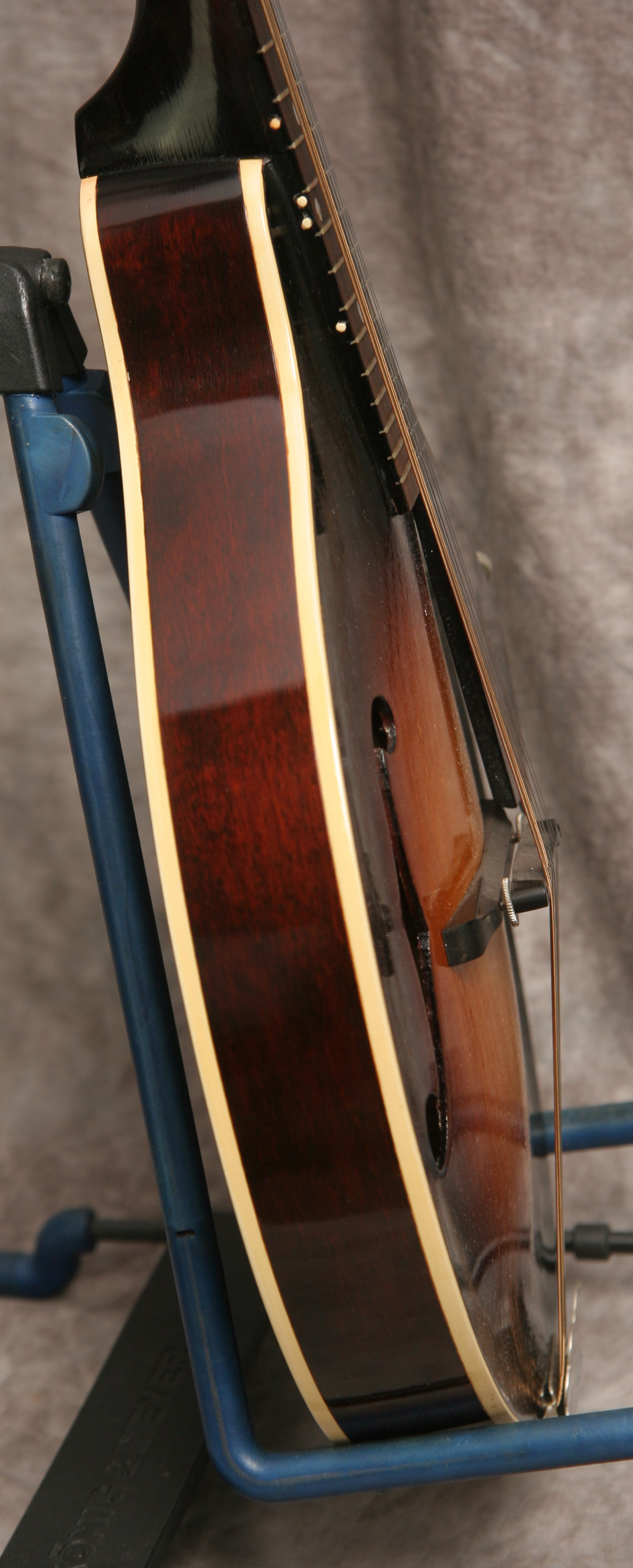 (Serial No. EG-4397) Very clean mandolin bought from the family of the original owner. Original sunburst finish and hardware, Adirondack