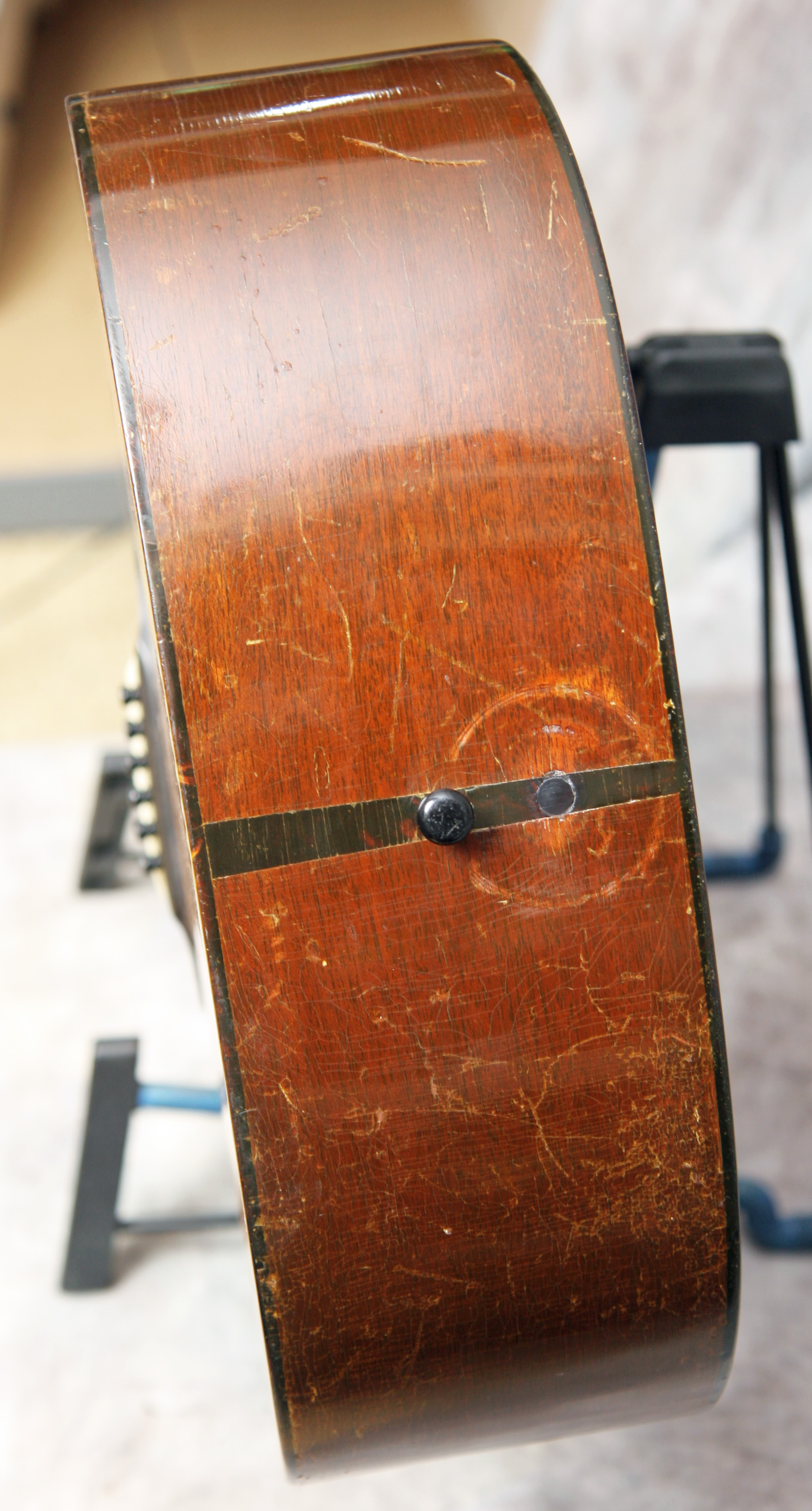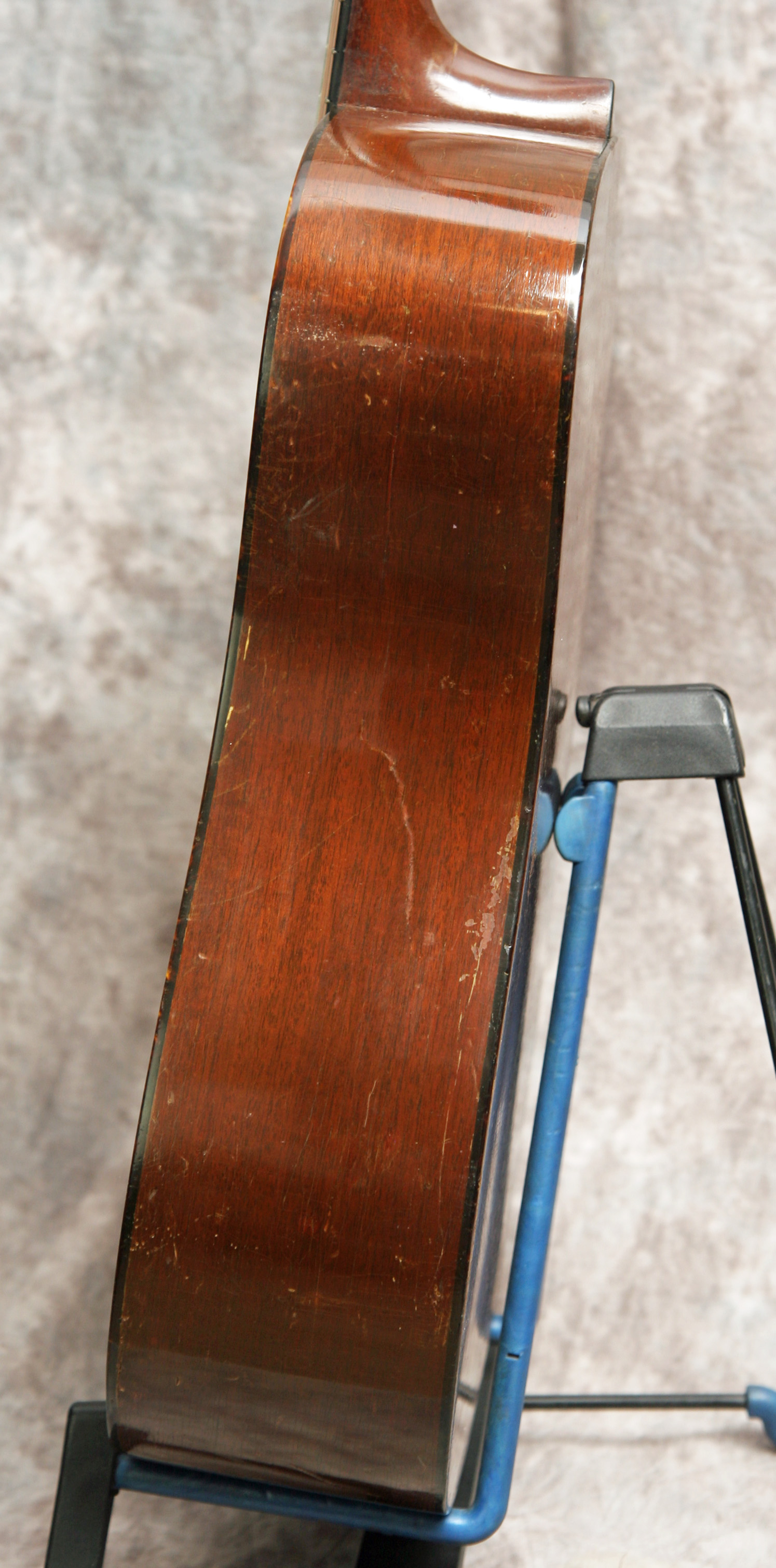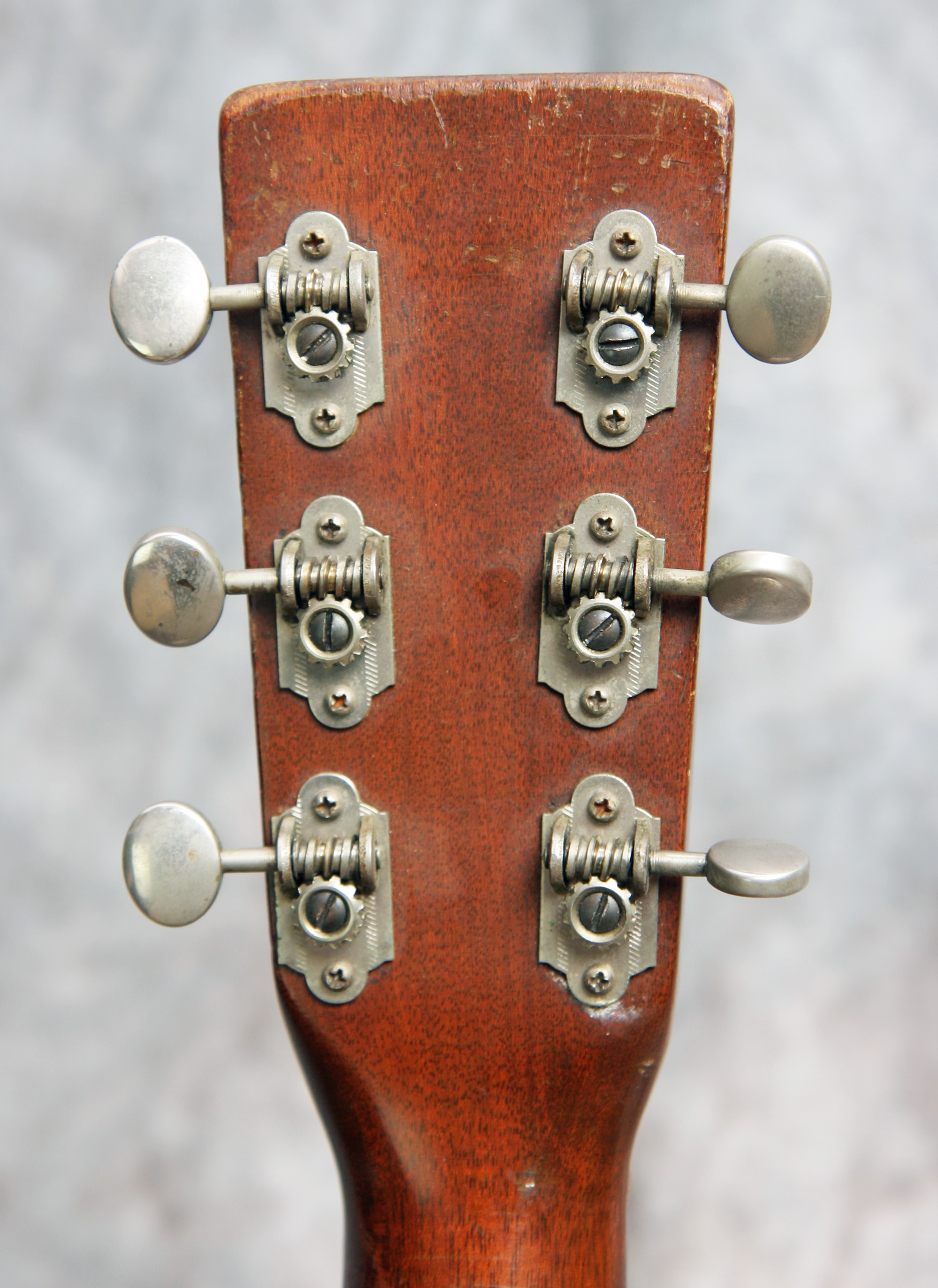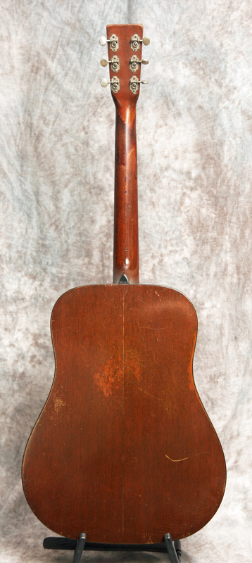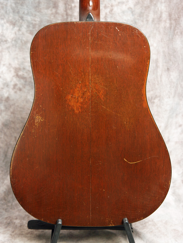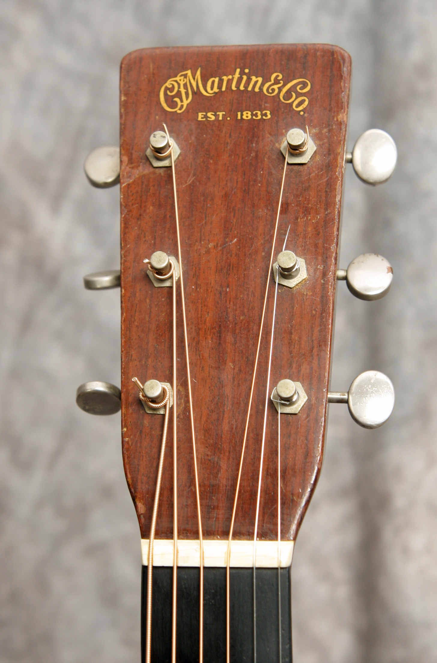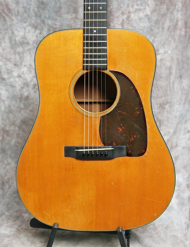 (Serial No. 80203) Excellent condition. This is what a good bluegrass guitar is all about. Martin D-18s are our favorite guitars on the planet. This one is LOUD and and POWERFUL. This very clean D-18 has an Adirondack top, mahogany back and sides, and a dark Brazilian rosewood fretboard. Original finish and original bridge/bridge plate. The tuners are original. I suspect there may be a bit of overspray on the back, as it looks like some minor buckle wear was touched up. The previous owner fitted the Lester Flatt style pickguard, and you can see where a jack hole was plugged in the bottom trim strip near the endpin. The neck was recently reset and a new bone saddle fitted by luthier Jack Dillen in Ashville. The guitar has the usual nicks and dings of one used to play music, but overall a very clean guitar. Neck is straight and the frets were dressed. The guitar has an ebony truss rod, just like those made in 1943. The guitar is very lightweight and resonant. The guitar has the typical chunky neck that these early 50s D18s are known for. It has the dry woody sound you only get from a 70+ year old mahogany guitar, with that huge Martin boom on the bottom end. Click here for a video clip of this guitar as played by Nathan Beaumont of the Duck Wallow Band, Brandon FL. Comes with an Ameritage hard case