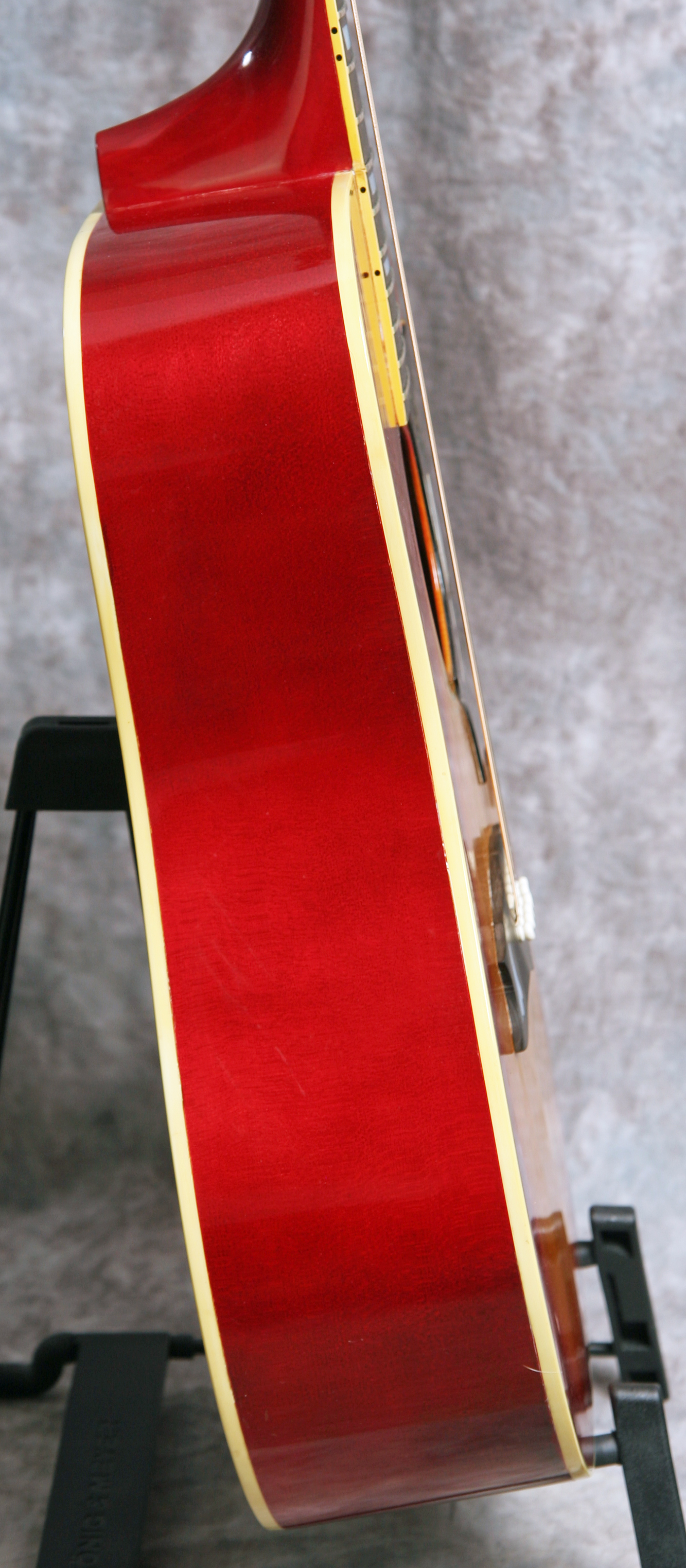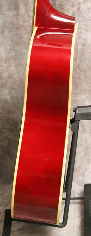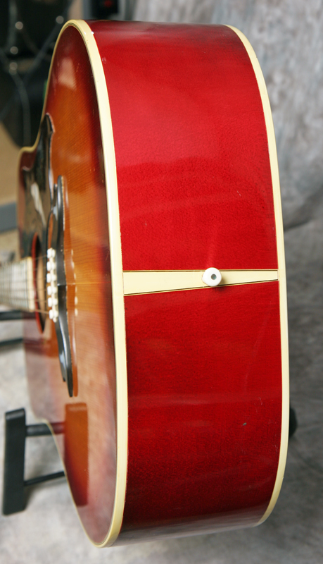 (Serial No. 3000338) This is a worthy guitar for restoration. Cherry back and sides with a natural top, ebony bridge and fretboard. The guitar is clean with no breaks or repairs noted. The guitar is playable right now, and if you never go above the 7th fret you will be fine. However, the guitar needs a neck reset as you go up the neck. At some point the bridge was shaved from the bottom to lower the action, so that may need to be addressed as well. All hardware and finish is original.