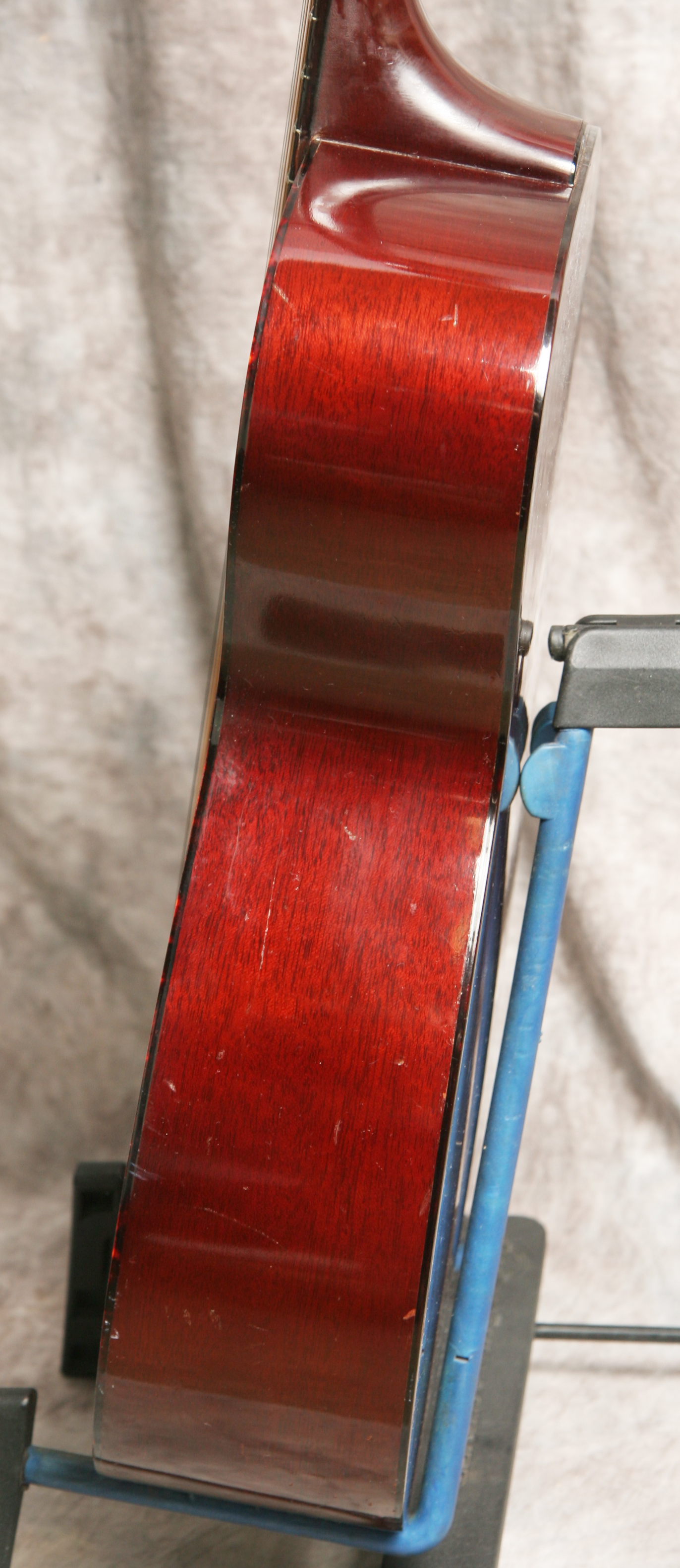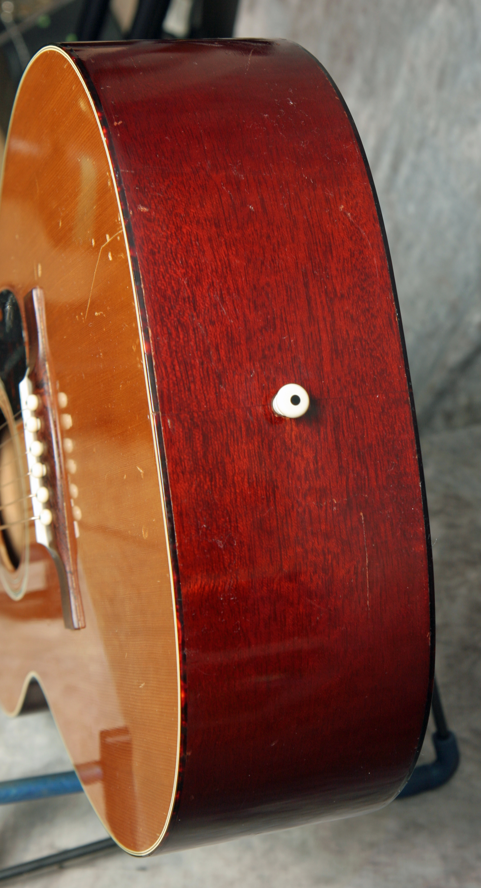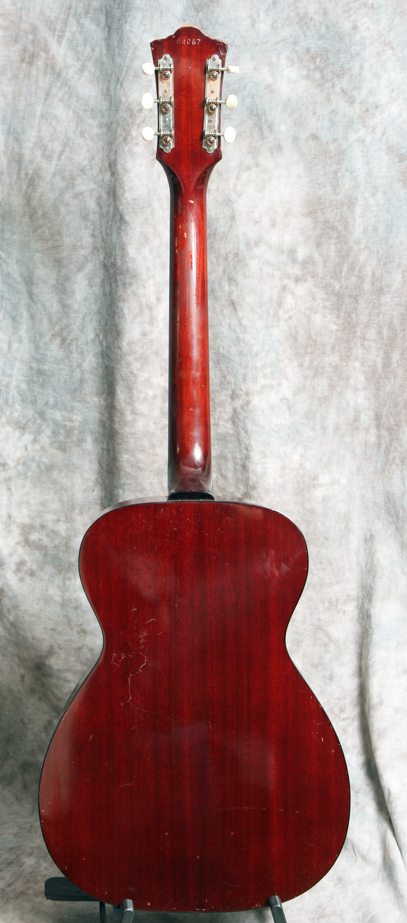 (Serial No. 44067) Nice guitar in excellent structural condition, showing some minor playing wear. Original finish and hardware. z hjySmall body guitars are in vogue right now & this gorgeous F-20 Troubadour is a wonderful example of the fine acoustic craftsmanship coming out of the Guild Hoboken factory in the early days of the company. The guitar has a light airiness to it that makes it so much fun to play & its small size makes it the perfect travel companion. The F20 was the smallest guitar in the Guild offerings in 1965. This has a solid spruce top with mahogany back and sides and a rosewood fretboard and bridge. This is an extremely well-built little guitar, much lighter in construction than the 1970s Westerly Guilds and easily a match in sound for similar Martin offerings from the same era. This is a fine recording or gigging guitar, a nice example of one of the best small body flat-tops of the 1960s. Open-back strip tuners are in perfect working condition. Overall length is 39 inches, the lower bout is 13 3/4 inches wide, and the body depth is 4 1/16 inch at the side, taken at the end block. Scale length is 24 1/2 in. Width of nut is 1 5/8 in. The neck has just been reset and the guitar set up by luthier Richie Dotson in Virginia. Here is a short video clip click here of this guitar played by Richie. Frets are good, neck is straight, and the action is low and playable. There is no strap button at the heel. Overall this is a very nice playing and sounding old Guild, with a strong upper-mid character to the tone. Comes with a newer hard case.