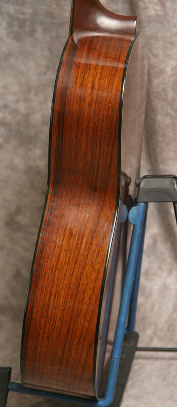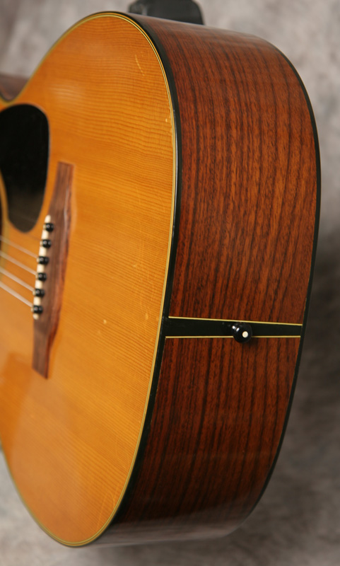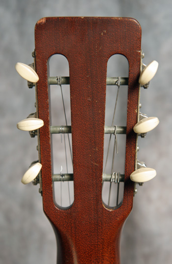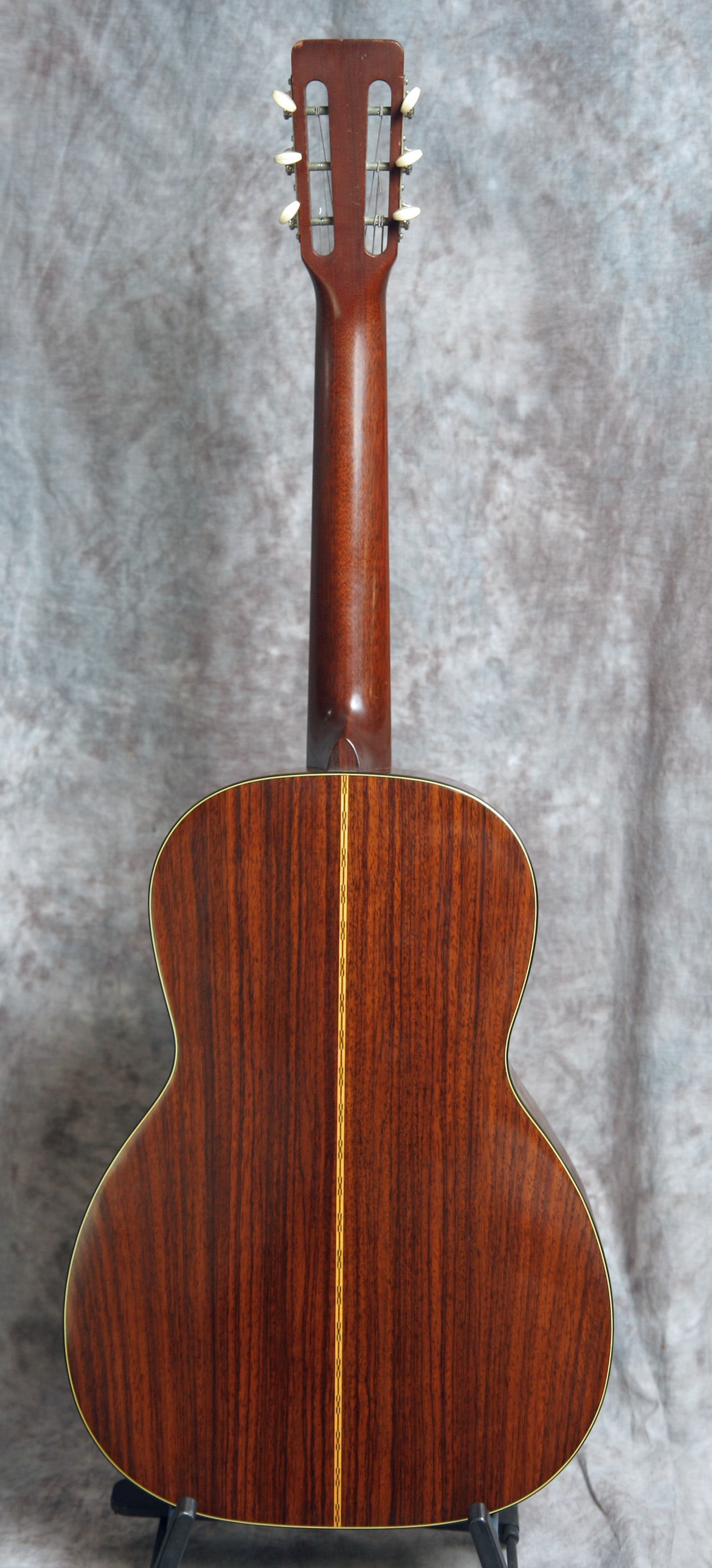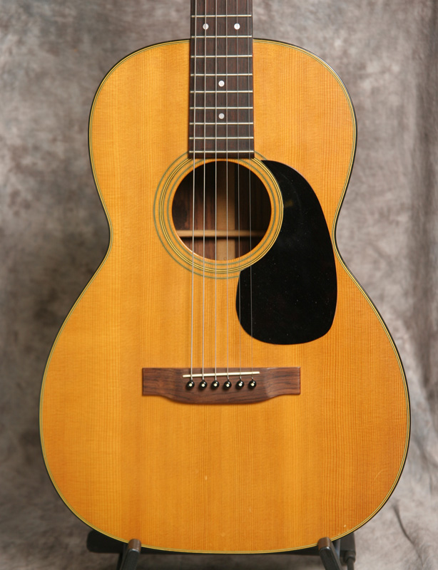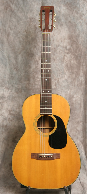 (Serial No. 266847) Excellent plus condition. Nicely aged Sitka spruce top and Indian rosewood back and sides. I think 00/000 size guitars are the best balanced as to sound, and they certainly are comfortable to play on the couch. These are about the size of a classical guitar. This one looks nearly unplayed and has a nice sweet punch to the sound. Rosewood peghead overlay with gold Martin script. Has a Martin C shaped neck profile with an 1-7/8 inch nut width. The neck was just reset by luthier Jack Dillen in Asheville, so the action is low and comfortable with plenty of saddle left. No repairs noted. The frets are in good shape and the neck is straight. Shows almost no finish checking and no scratches. Has a nice big open woody sound with strong volume. Click here for a video clip of this guitar as played by Nathan Beaumont of the Duck Wallow Band, Brandon FL. Comes with a period hard case.