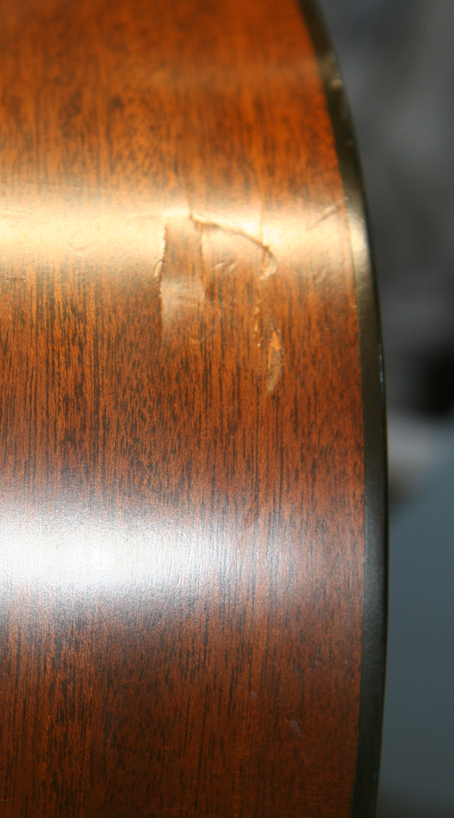 (Serial No. 268112) The Martin 016NY is as close as the 1960s Martin company got to making a 1920s guitar. The folk boom of the late 50s made the old style 12 fret Martins fashionable among discerning traditional players, and several so-called New York models were officially added to the line from 1962-1965. These were named to honor both the Martin company's original roots in that city and the strength and influence of the contemporary Greenwich Village folk scene. The blank fingerboard, satin lacquer finish, smaller rectangular bridge, and lack of a pickguard certainly gives it a more vintage vibe, but rest assured these models were intended for steel strings and work well with light gauge bronze. That doesn't mean this one wouldn't sound good with silk & steel strings, however, which would make for even easier string action, and it's very easy with the light gauge steel strings that are on it now. Original tuners, nut, bridge (reglued) and bridge pins and the satin finish is all original. 1 7/8 inch nut, bar frets, top bound only with black/white 5 ply binding, mahogany back and sides with a Sitka spruce top. Has the desirable small maple bridge plate. One minor repair on the bass side, but no cracks. Cosmetically, there are several nicks /dings and some finish checking, common to vintage instruments. It does show some playing wear, with some fretboard divots in the positions near the nut and some pick wear at the edge of the soundhole. Excellent neck set. Nice low action well suited to fingerstyle playing. Here is a short video clip of this instrument played by Nathan Beaumont. It has a bigger sound than is typical of a 0-16, with a lot more bass response. Comes with a newer nice hardshell case that fits well....USD $2950