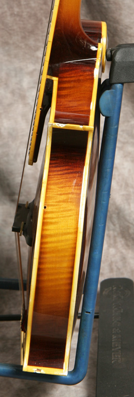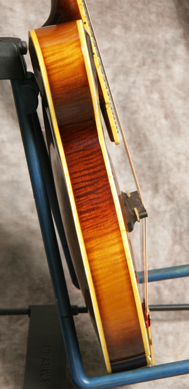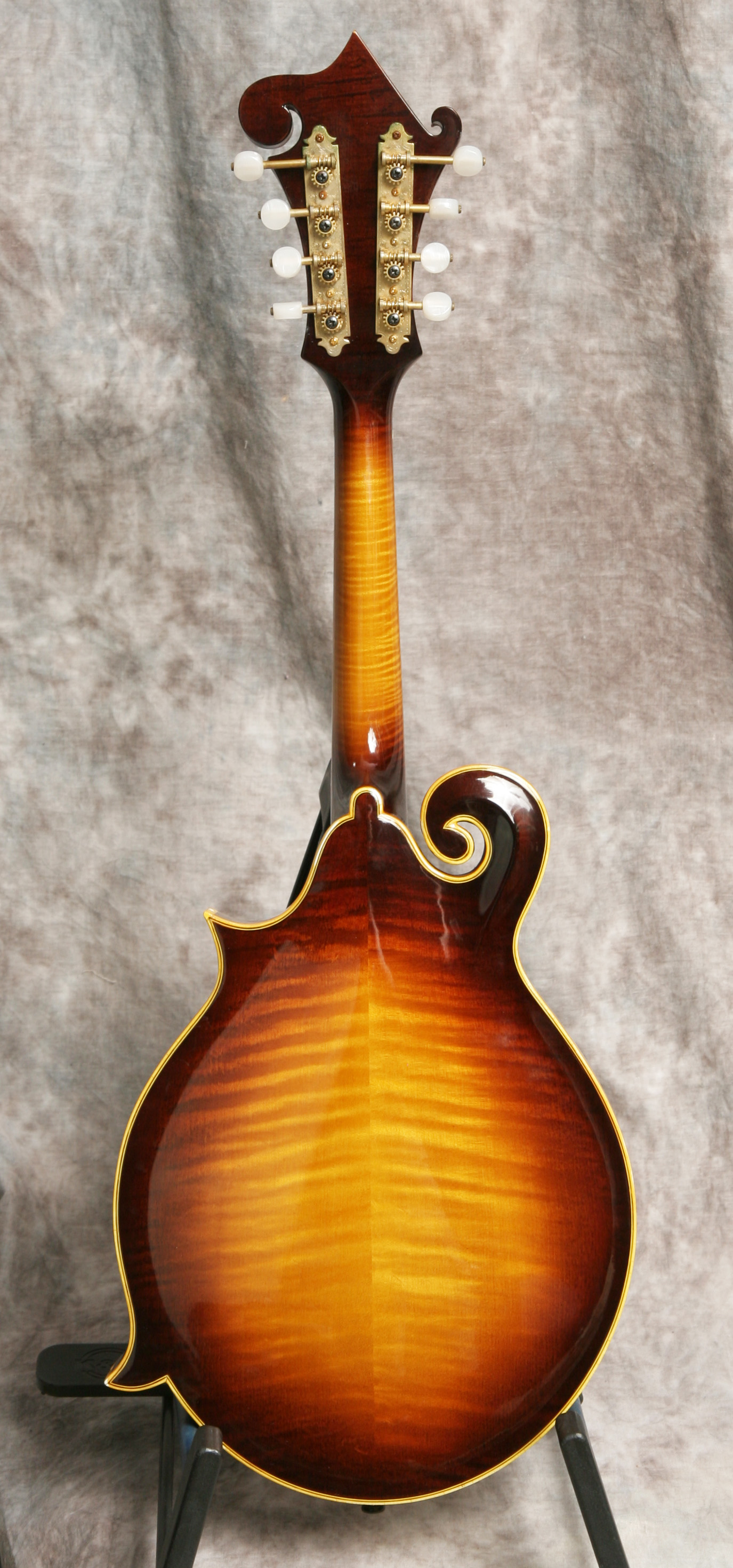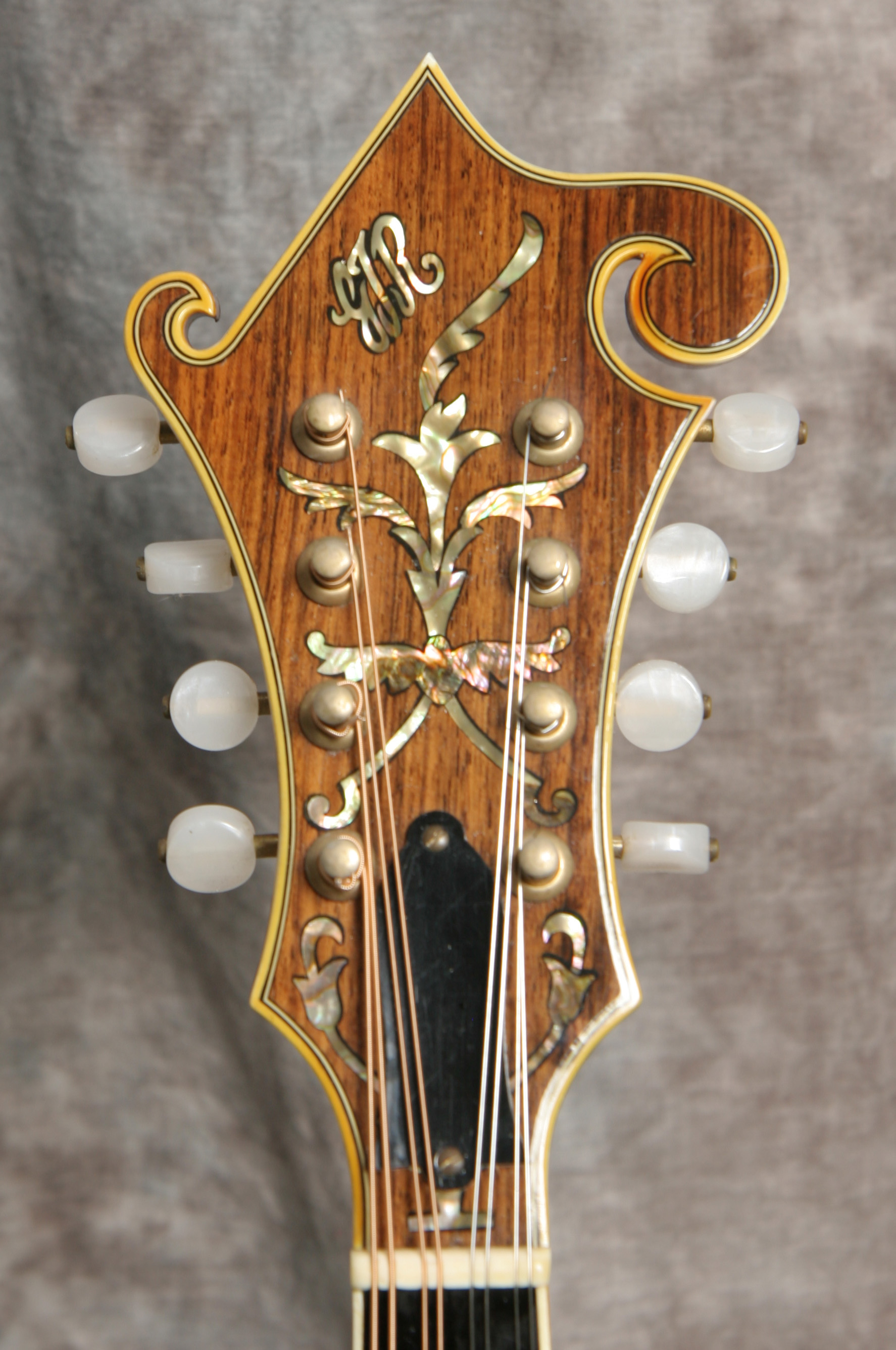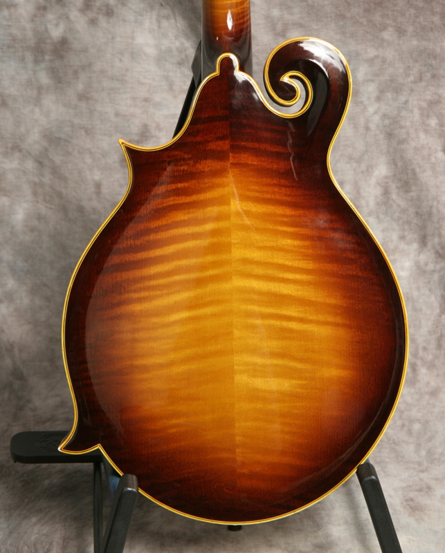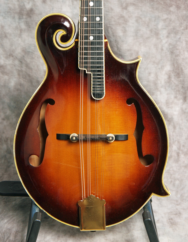 (Serial #7921) Excellent condition. Although I've heard of these, I've never had a chance to play one until recently. GTR stood for (George) Gruhn, (Tut) Taylor and (Randy)Wood, and it was also the name of the original Gruhn shop. These GTR mandolins were handmade for George Gruhn by a foreman in the Moridaira guitar factory in Japan between 1974 and 1978. George indicates that less than 100 were made. This is a very nicely built mandolin, on a par with any upper end mandolin built in Japan and better built than most Gibson mandolins of similar vintage. It has a solid spruce top, solid flamed maple back and sides, ebony fretboard and bridge, and the GTR logo in pearl in the peghead. It's in great shape with just a few scratches, some fine cracks in the binding and some small chips in the binding, mostly on the points. No repairs noted or needed. It plays and sounds great with a nice low action and good volume and chop. This has some good pop. Gruhn designed this mandolin to carry his store name. He did not skimp on the materials or workmanship. Its a very high quality build. The neck is straight and the frets are in good shape. Here is a short video clip of this instrument played by Buck Buchheister of The Freightliners. Comes with the nice original hardshell case.