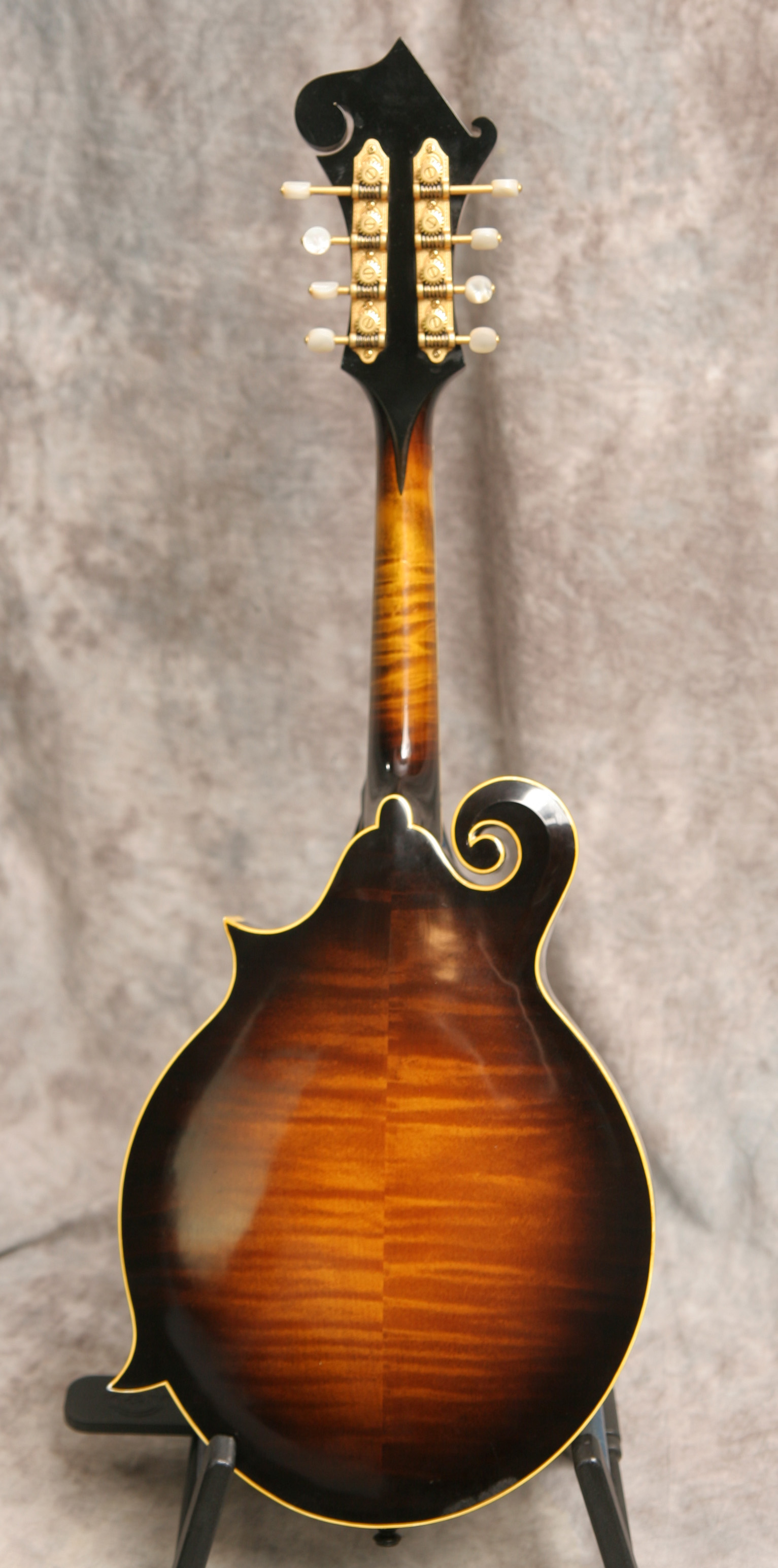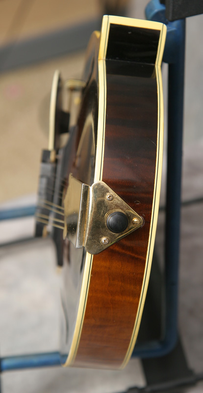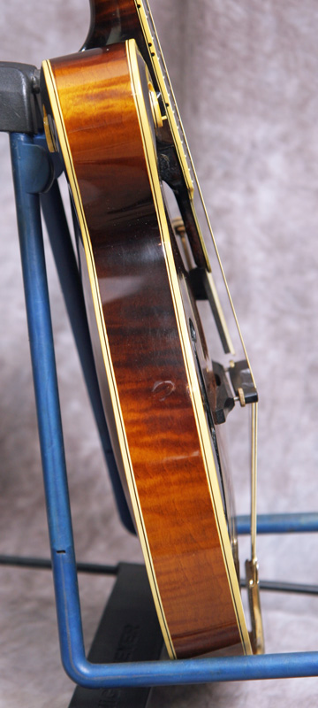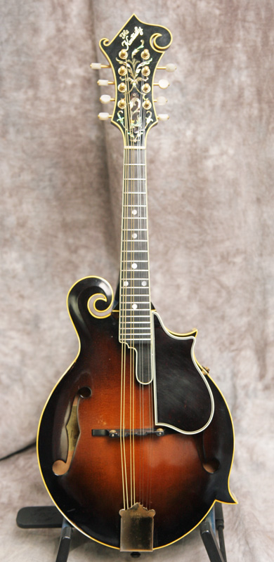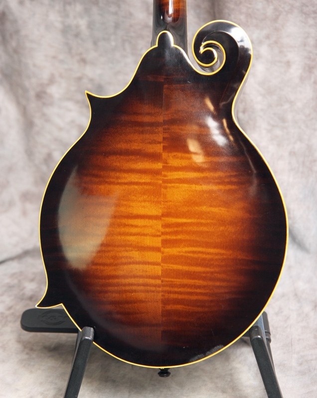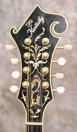 (Serial No. 84506) Excellent condition. Kentucky was one of the first to produce high quality F5 copies in the late 1970s and early 1980s. THis instrument has a five digitThey were built in the small Maruka workshop in Japan, where Japanese luthier and master carver Eiichi Sumi is well known for being a part of the small team of 4 builders that were responsible for these amazing instruments. He has literally carved out a career of distinction based upon the mastery of building the finest arch top instruments in all of Japan. The mandolin has many high end touches, such as a highly flamed maple back and sides, a hand carved spruce top, Fern style peghead logo with a matching truss rod cover, and ivoriod binding. The tuners look like either Schaller or Grover replacements and the tailpiece cover is replaced. The instrument has been played and shows signs of use. No repairs are evident. The flat ebony fretboard has an 1 1/8 inch nut and is scooped to eliminate pick click. The top has very minor playing scratches and small knicks. The mandolin was just partially refretted and set up by luthier Marty Beeson. The action is low with a fully working truss rod and ebony bridge. Here is a short video clip of Nathan Beaumont of Brandon, FL picking some bluegrass. Comes with the original rectangular hardshell case.
