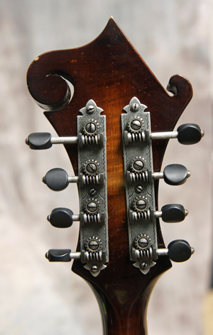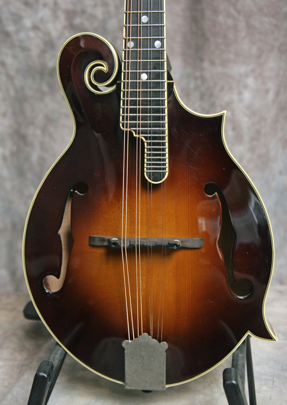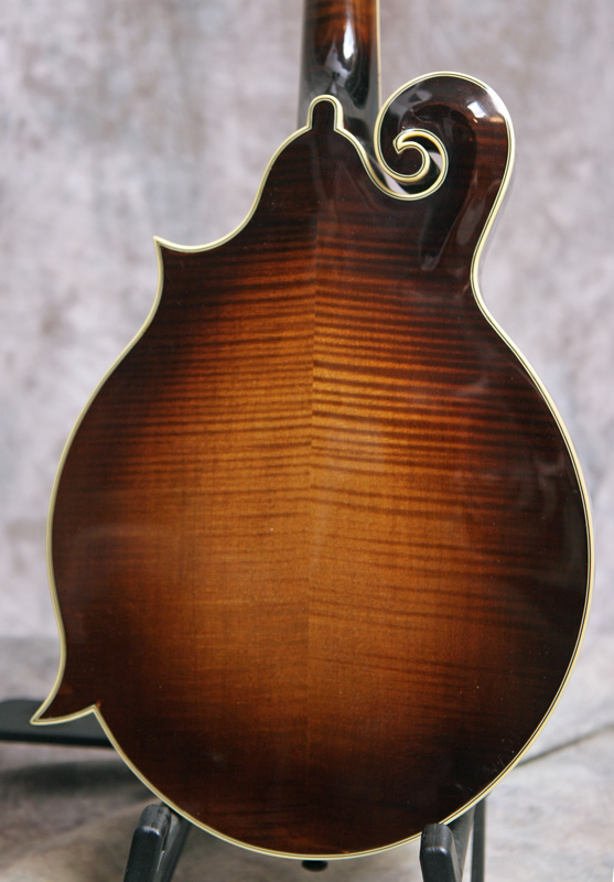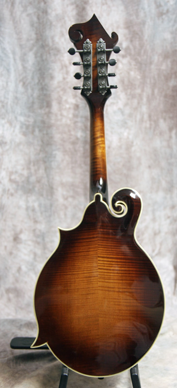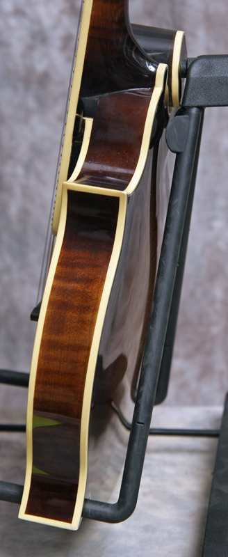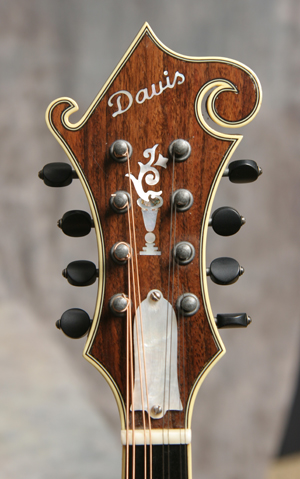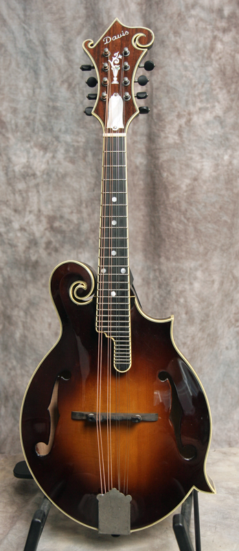 (Serial No. none) Excellent condition with only a couple of tiny nicks keeping it from new. I bought this one from the original owner. Tim Davis is best known as a custom banjo builder, but his shop did build a few mandolins about the time the "O Brother" movie came out in 2000. All solid woods. This has an Adirondack red spruce top, nicely flamed maple back and sides, mahogany neck, and an ebony fretboard and bridge. Nut is 1 1/8 inch on a flat fretboard with traditional frets. Fitted with Stew Mac Golden Age vintage repro tuners. Action is easy, frets are fine, neck set is good. Good sounding mandolin with a good chop, deep woofy bass and clear trebles. Click here for a video clip of this mandolin as played by Nathan Beaumont of the Remedy Tree Band in Brandon FL. Comes with the original hardshell case, also very clean.