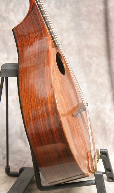 (Serial # none) Excellent condition. Stefan Sobell builds the finest instrument for Celtic music in the world. He calls this build a cittern - a long scale double course instrument, usually tuned either GDAD or GDAE. I usually tune it GDAE, and play it as an octave mandolin. This is an early instrument, made at Turf House, before the move to the Old School. This is the sound you hear on all the classic Irish and Celtic recordings in the 70s and 80s - Battlefield Band, Boys of the Lough, Planxty, and artists like Donal Luney and Andy Irvine. This instrument is built with Indian rosewood back and sides, cedar top and mahogany neck. The fingerboard is slightly wider than a Gibson to allow quick rolls and triplets. Scale length is 23", which gives amazing sustain. Nut is 1.5 inch. Neck is straight, neck angle is good, frets are fine. The bridge, although different from my other Sobell appears to be original and is fit well to the top. This 13.5 inch wide cittern also has gold tuners, brass Sobell one piece tailpiece, and an ebony fingerboard. Fitted with an internal pickup and endpin jack. Action is low and comfortable. Very loud instrument that will cut through sessions with ease. Deep woody round tone and very clear notes. Here is a short video clip of this instrument played by Nathan Beaumont.(This is his first time ever playing a cittern. He done good!) Comes with the original very beat blue fiberglass Bill Flatman hardshell case, lined with genuine Papa Smurf hide.
