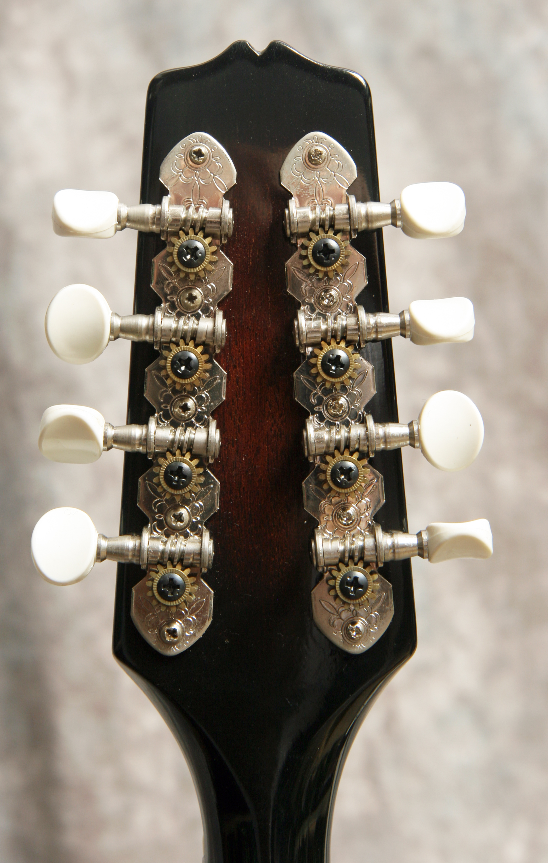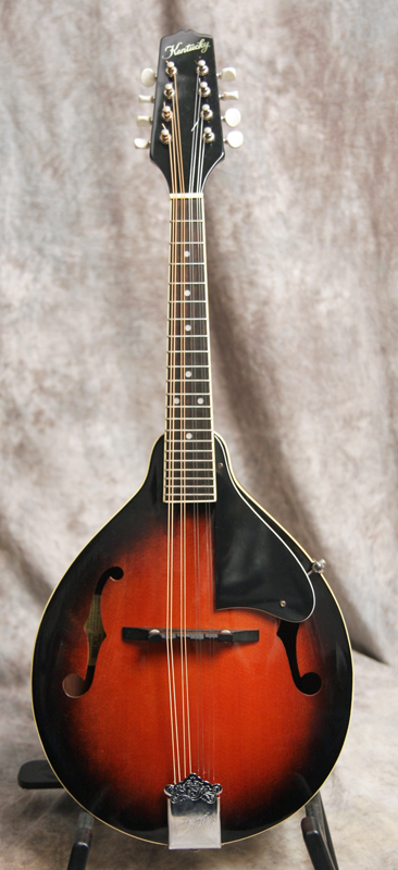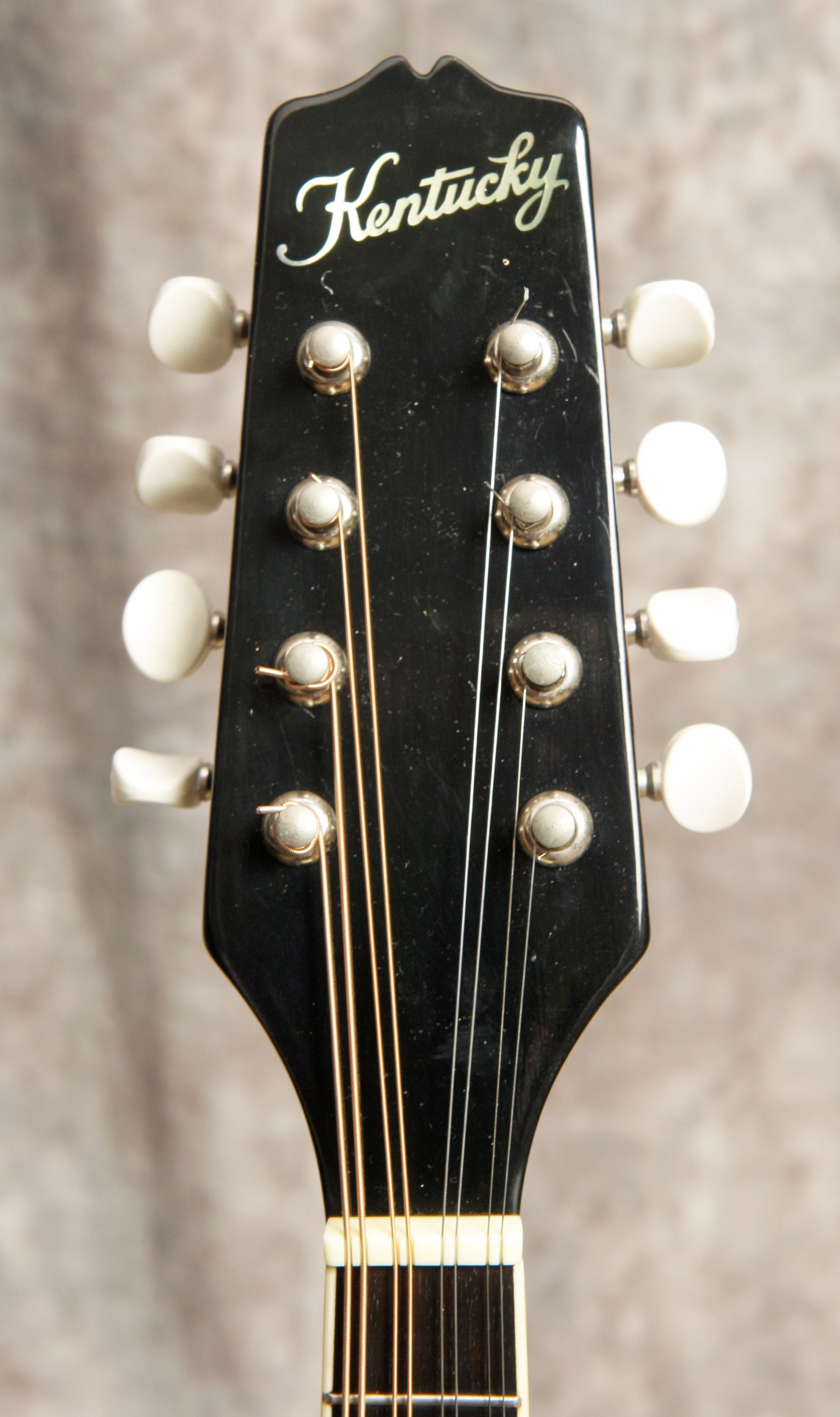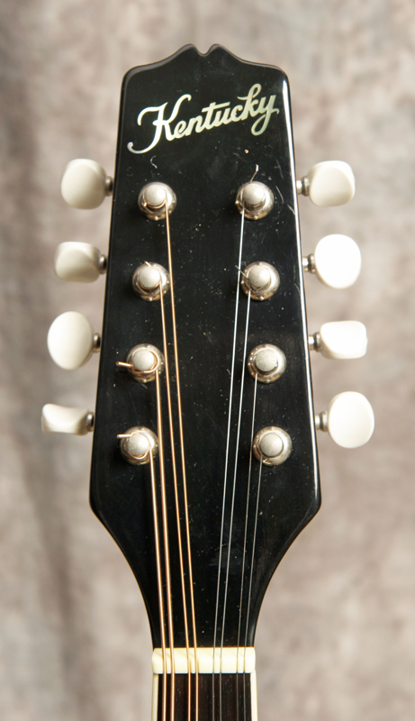 (Serial No. 98300092) Built in Korea. Excellent condition. Kentucky was one of the first to produce high quality mandolins overseas in the late 1970s and early 1980s. This mandolin has mahogany back and sides, a solid spruce top, arosewood fretboard and ebony bridge. All hardware and finish appears original. The instrument shows very little playing wear. No repairs are evident. The flat ebony fretboard has an 1 1/8 inch nut. The action is low and playable with a fully working truss rod and ebony bridge. Comes with a gig bag.
